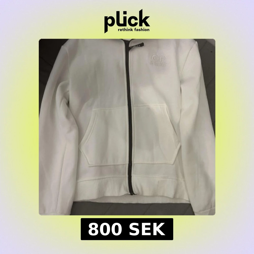 Säljer en stilren vit huvtröja från C.P. Company med dragkedja och broderad logga på bröstet. Tröjan har en unik detalj med glasögon i huvan och praktiska fickor framtill. Perfekt för en cool och avslappnad stil. Jag fick den som födelsedags present men jag gillar inte den så mycket och har aldrig haft på mig den ute bara testat på mig.