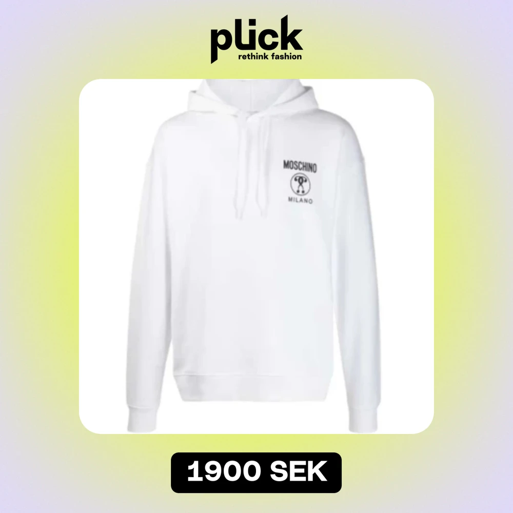Säljer en snygg och stilren vit hoodie från Moschino med deras ikoniska logga tryckt på bröstet. Den har en klassisk passform med långa ärmar och en bekväm huva med dragsko. Perfekt för en casual look eller att mysa i hemma. 🖤