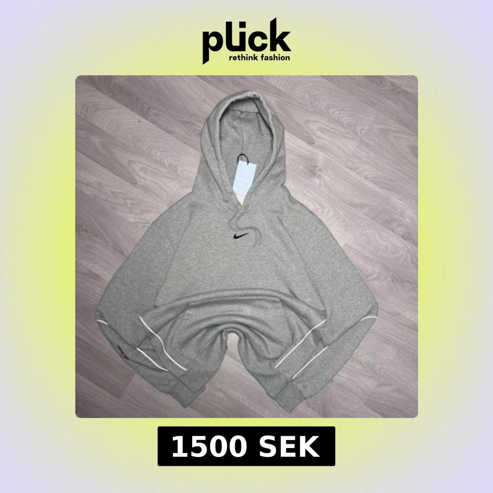 Säljer en helt ny grå hoodie från NOCTA x Nike med snygga vita reflexdetaljer längs ärmar och rygg. Oversized fit och mjukt bomullsmaterial så de är bekvämt.