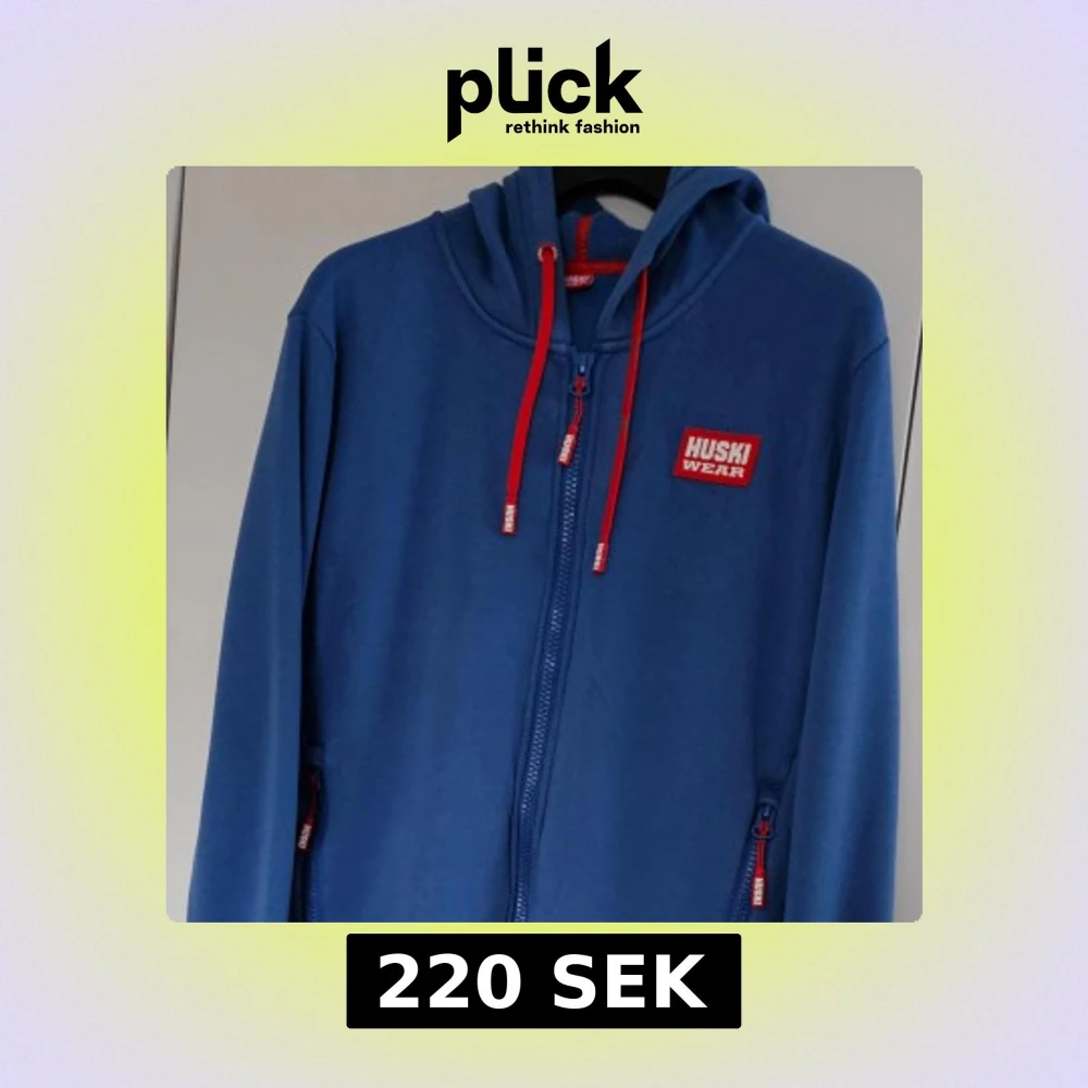 Snygg blå huvtröja från Huski Wear med röda detaljer. Tröjan har dragkedja framtill och en praktisk huva med röda snören. Perfekt för en avslappnad stil.