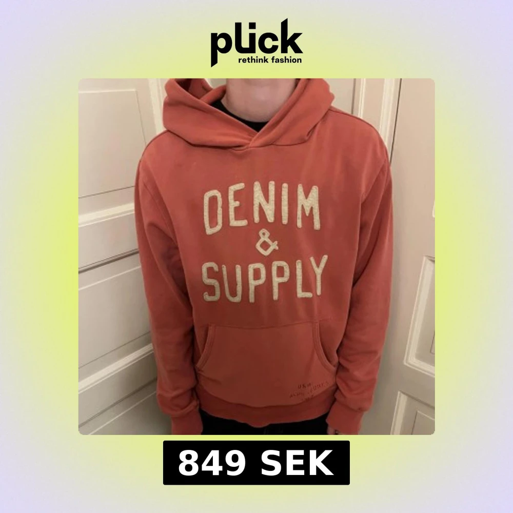 En röd/rosa Ralph Lauren hoodie ifrån deras märke Denim & Supply, storlek M jag är 180 på bild och lite stor för mig, liten fläck nere på tröjan som ej syns vid användning, skriv vid frågor!