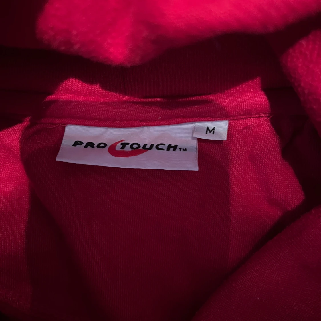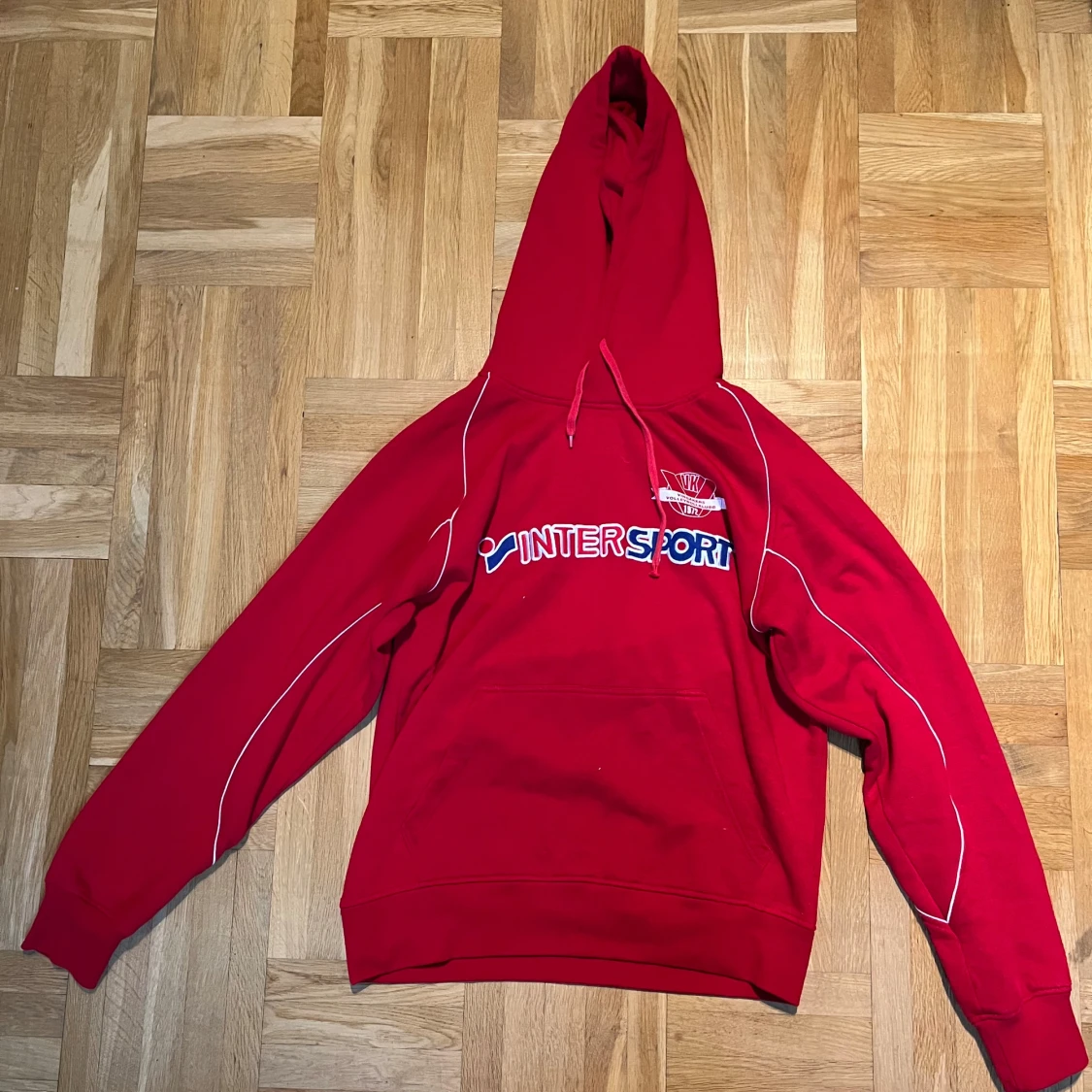 Röd hoodie från Pro Touch med stor Intersport-logga på bröstet och vita detaljer längs ärmarna. Klassisk känguruficka framtill, snörning i huvan och tryckt klubbmärke på bröstet. Perfekt för dig som gillar sportig stil.