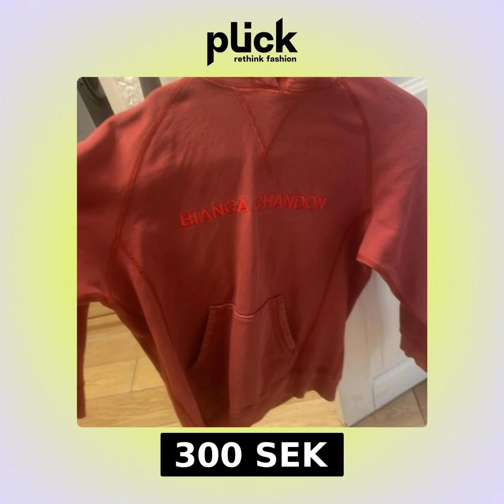 Säljer en röd hoodie från Bianca Chandôn med broderad logga på bröstet. Tröjan har huva med snörning, känguruficka och långa ärmar. Perfekt för dig som gillar streetwear och vill ha något snyggt och bekvämt.
