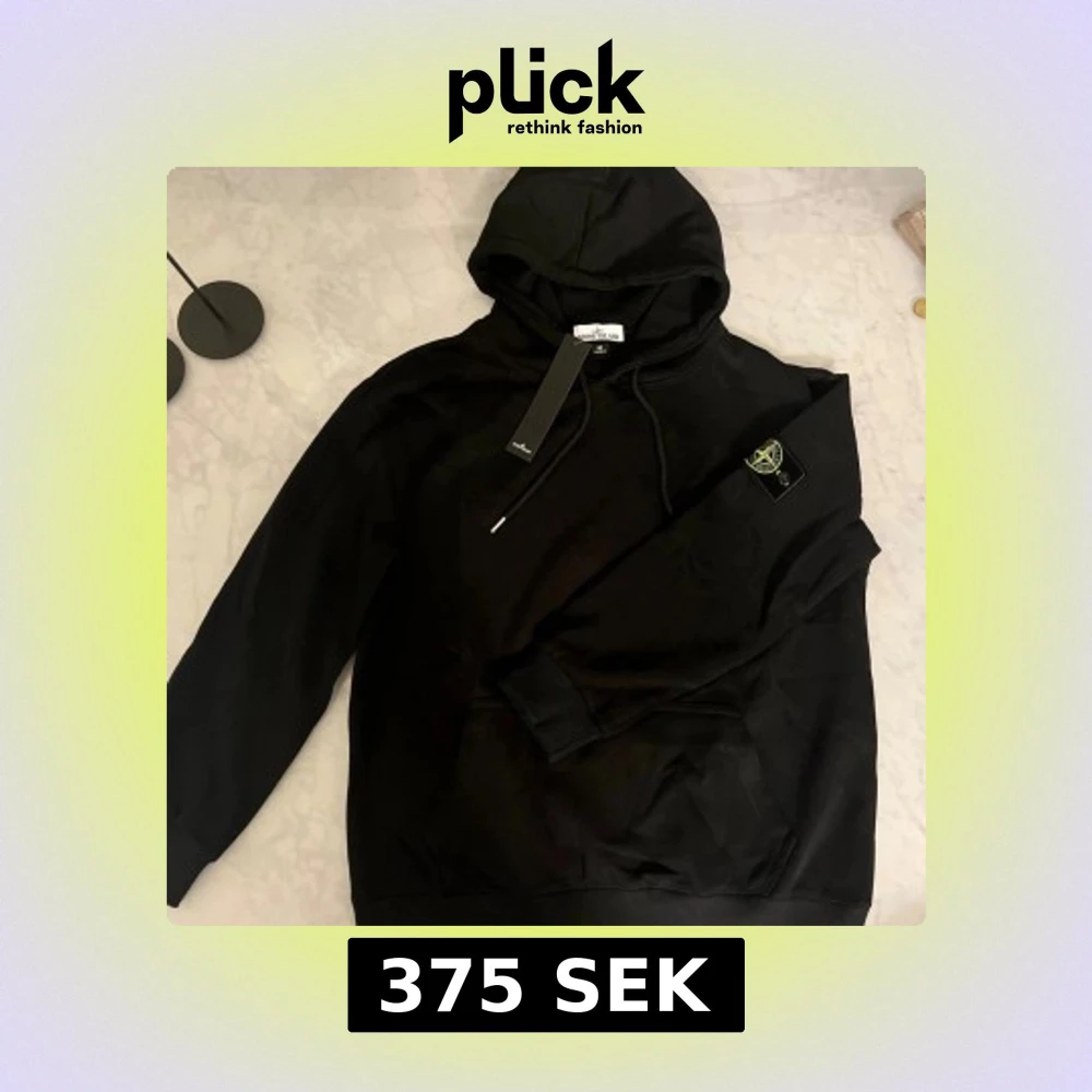 Svart hoodie från i storlek M med klassisk logotyp-patch på ärmen. Tröjan har huva med snörning, ribbade muddar och en stor magficka. Materialet är mjuk bomull och passformen är normal. Perfekt för dig som gillar streetwear och snygga detaljer.