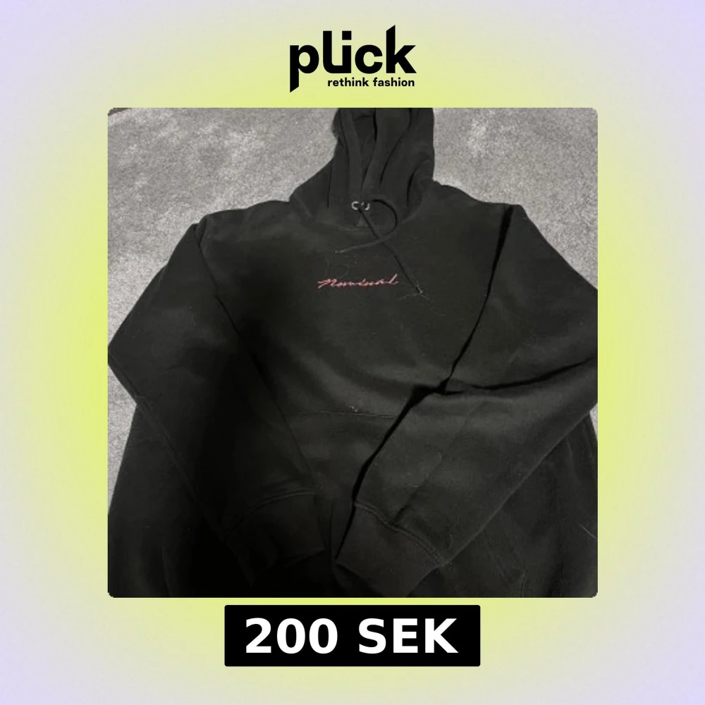 Säljer en svart hoodie från Nominal med ett coolt Mount Fuji-tryck på baksidan. I bra skick. Finns katthår på tröjan som man ser men det tas bort innan köp🤗. Skriv vid frågor.