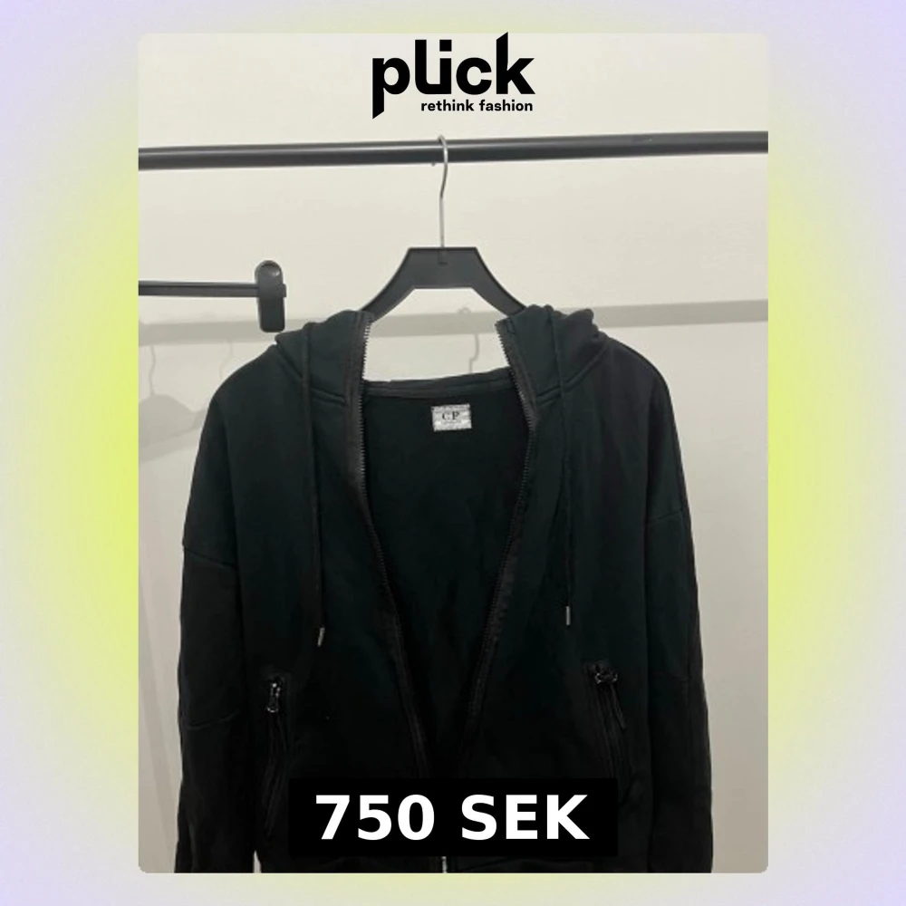 Svart hoodie från CP med dragkedja framtill, justerbar huva med snören och två fickor med dragkedja. Tillverkad i mjukt bomullsmaterial och har ribbade muddar vid ärmslut och nederkant. Perfekt för en avslappnad och stilren look.