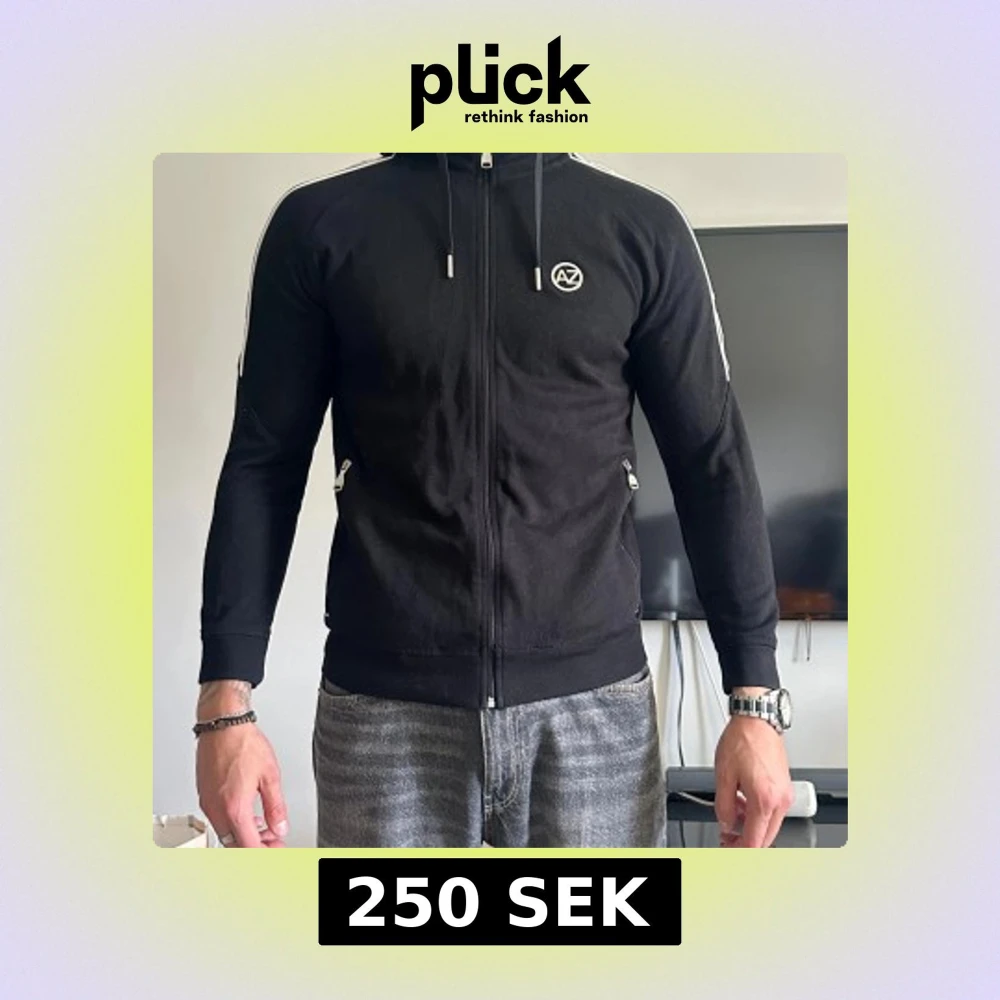 Svart tröja från Alessandro Zavetti med vita detaljer och dragkedja framtill. Tröjan har huva, vita ränder längs axlarna och logga på bröstet. Snygg och sportig look med två fickor med dragkedja.