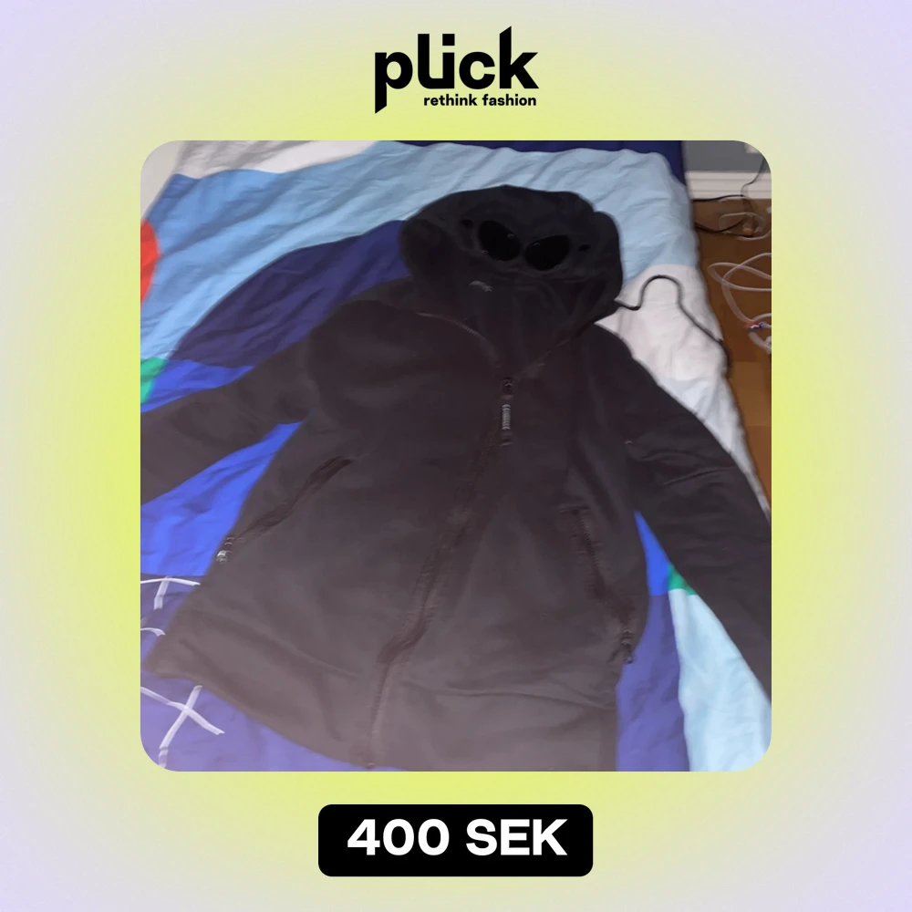 Säljer en svart jacka från C.P. Company i 100% bomull. Den har en cool huva med inbyggda glasögon och dragkedja framtill. Perfekt för höst och vår, och den är i bra skick. Passar både till vardags och lite mer avslappnade tillfällen.