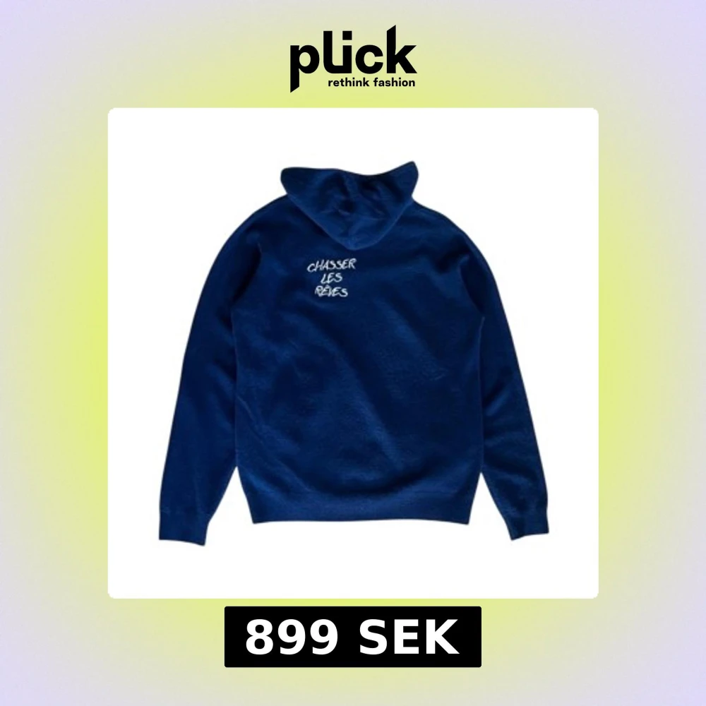 Skön marinblå merino hoodie från RealSociete. Stilrent brodyr på vänstra sidan av ryggen där det står Chasser les reves vilket på franska betyder jaga dina drömmar. Finns i alla storlekar på profilen