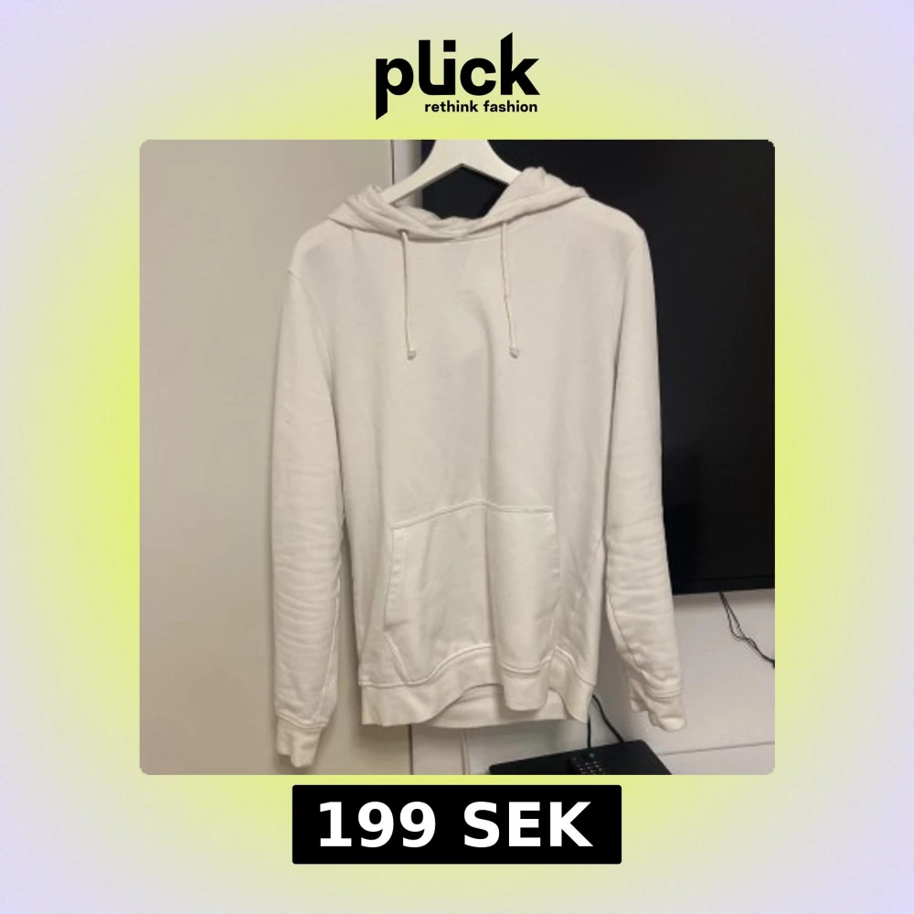 Säljer en stilren vit hoodie från Pier One. Den har en klassisk design med dragsko i huvan och en stor ficka framtill. Perfekt för en avslappnad look.