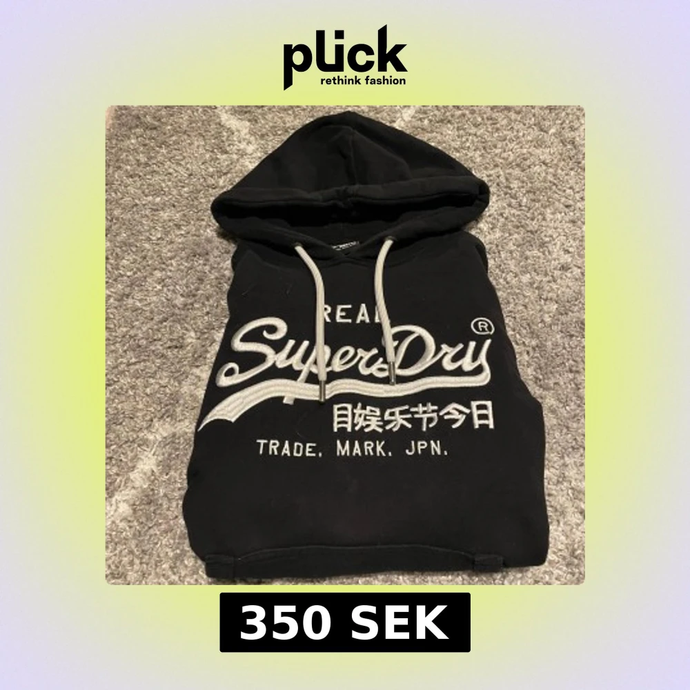 En svart Superdry hoodie i storlek M väldigt bra skick det är bara att skriva vid frågor