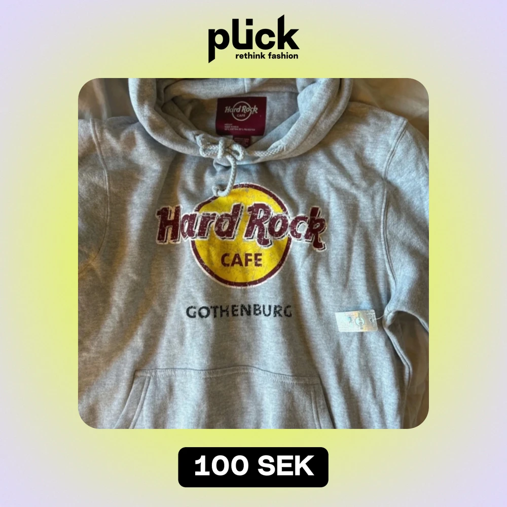 Säljer en grå hoodie från Hard Rock Cafe med tryck från Göteborg. Den är supermjuk och perfekt för kalla dagar. Har en klassisk känguruficka och justerbar huva. Perfekt för vardagsbruk eller som souvenir! 🧥
