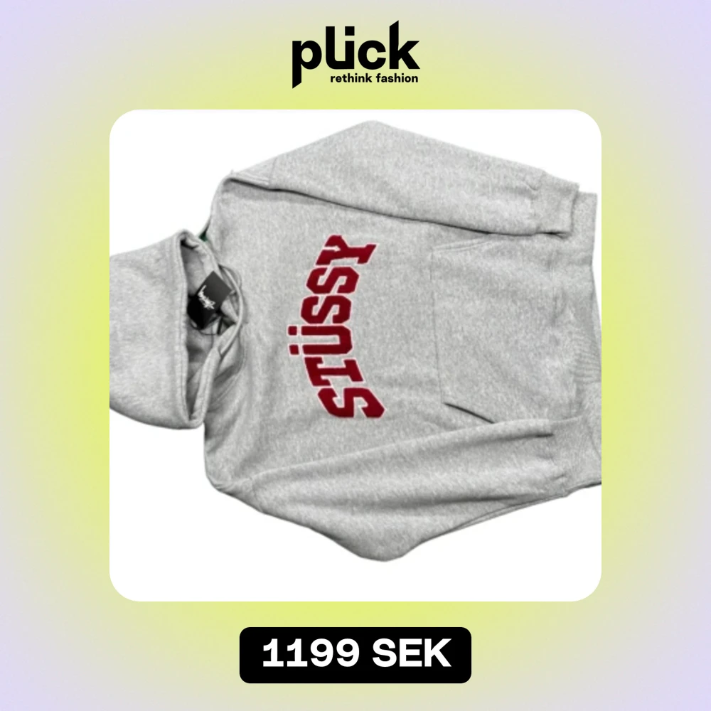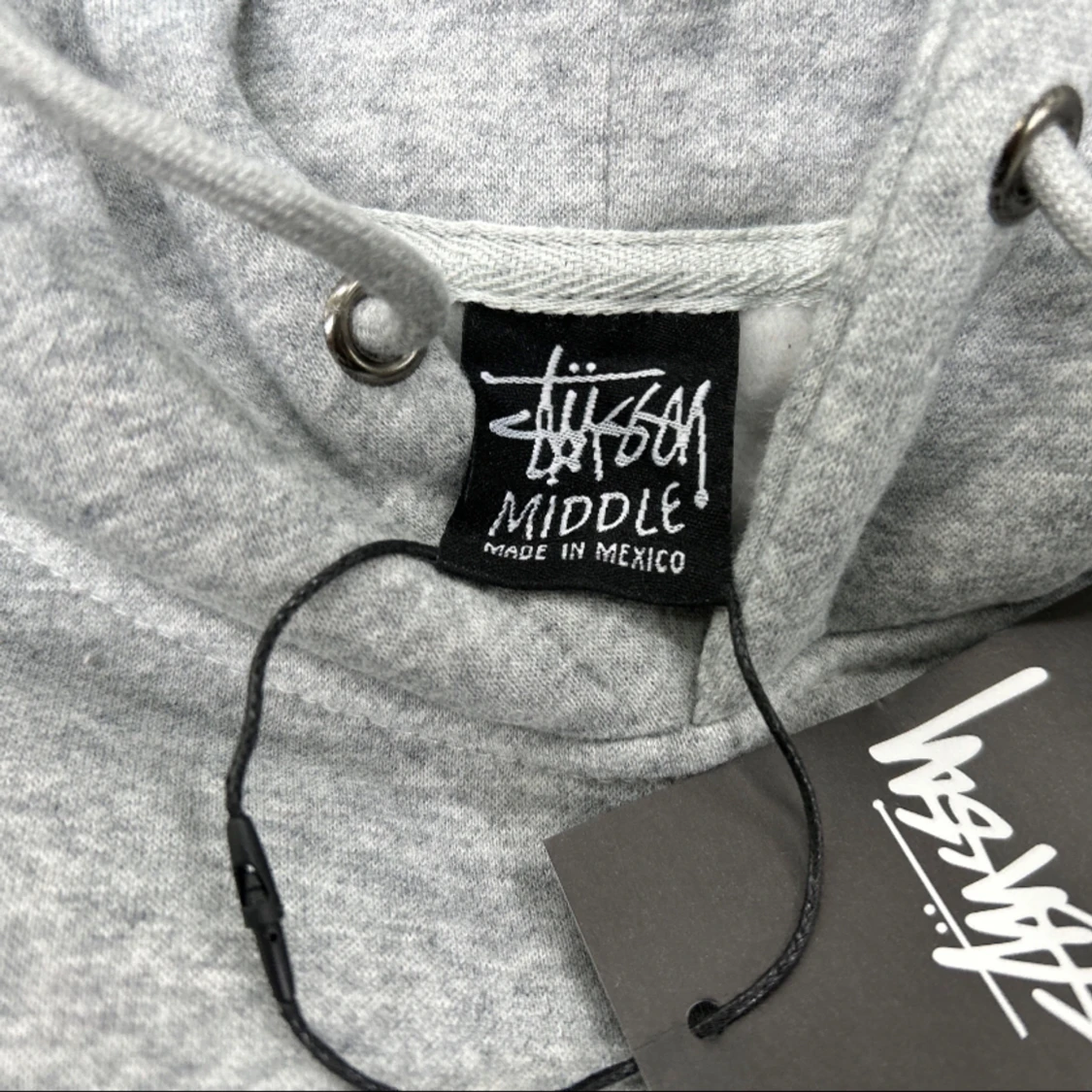helt ny med prislapp embroderat stussy logga i röd färg storlek M grå