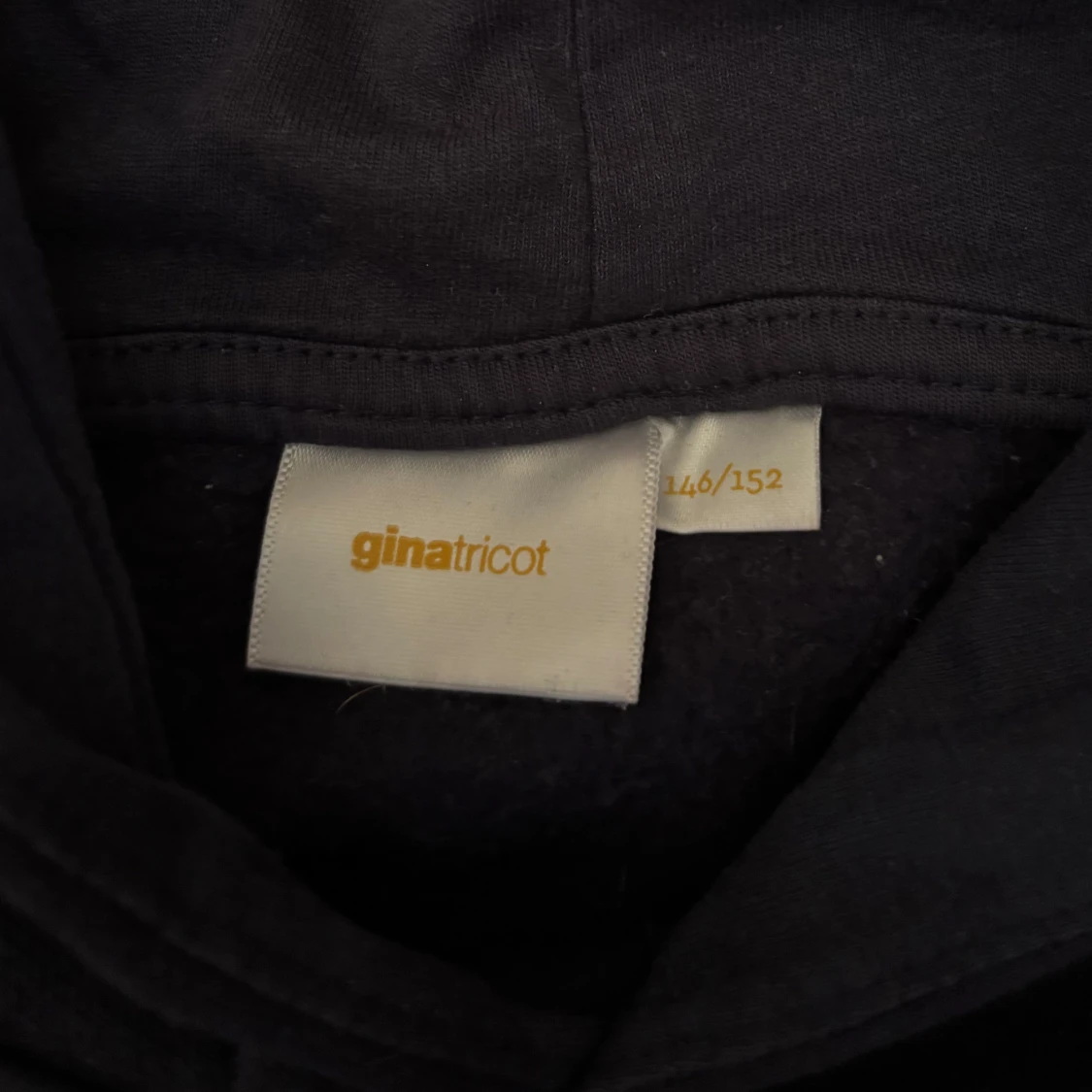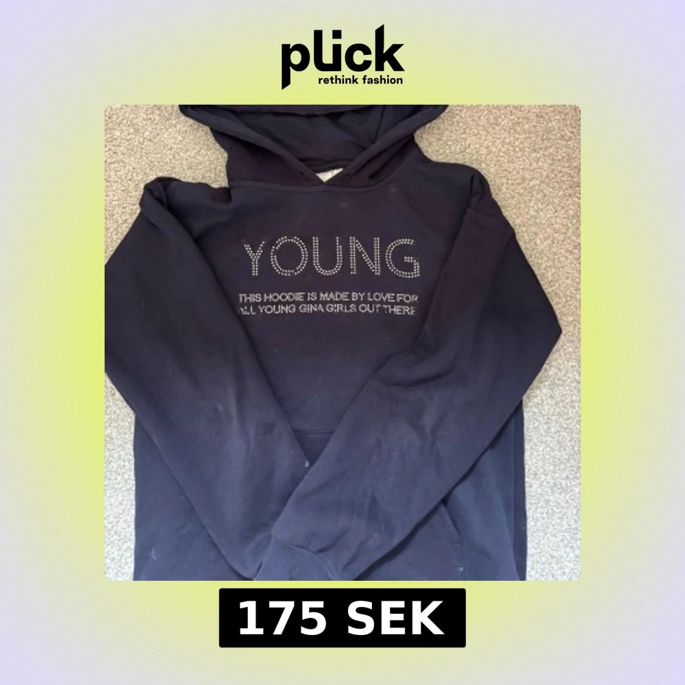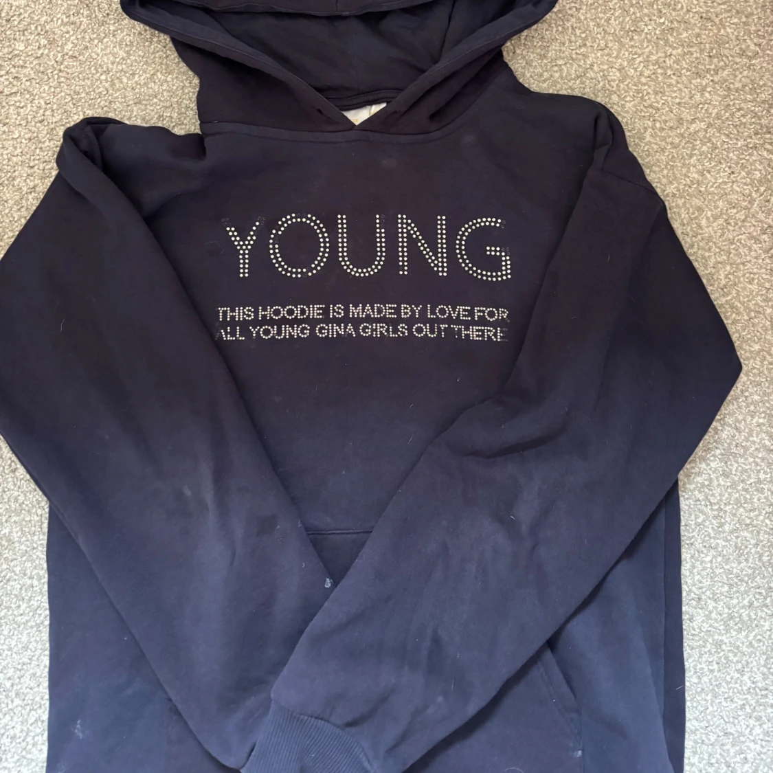 Marinblå hoodie från Gina Tricot med tryck på framsidan,några diamanter har ramlat av. Säljer för ja inte använder den längre 🩷