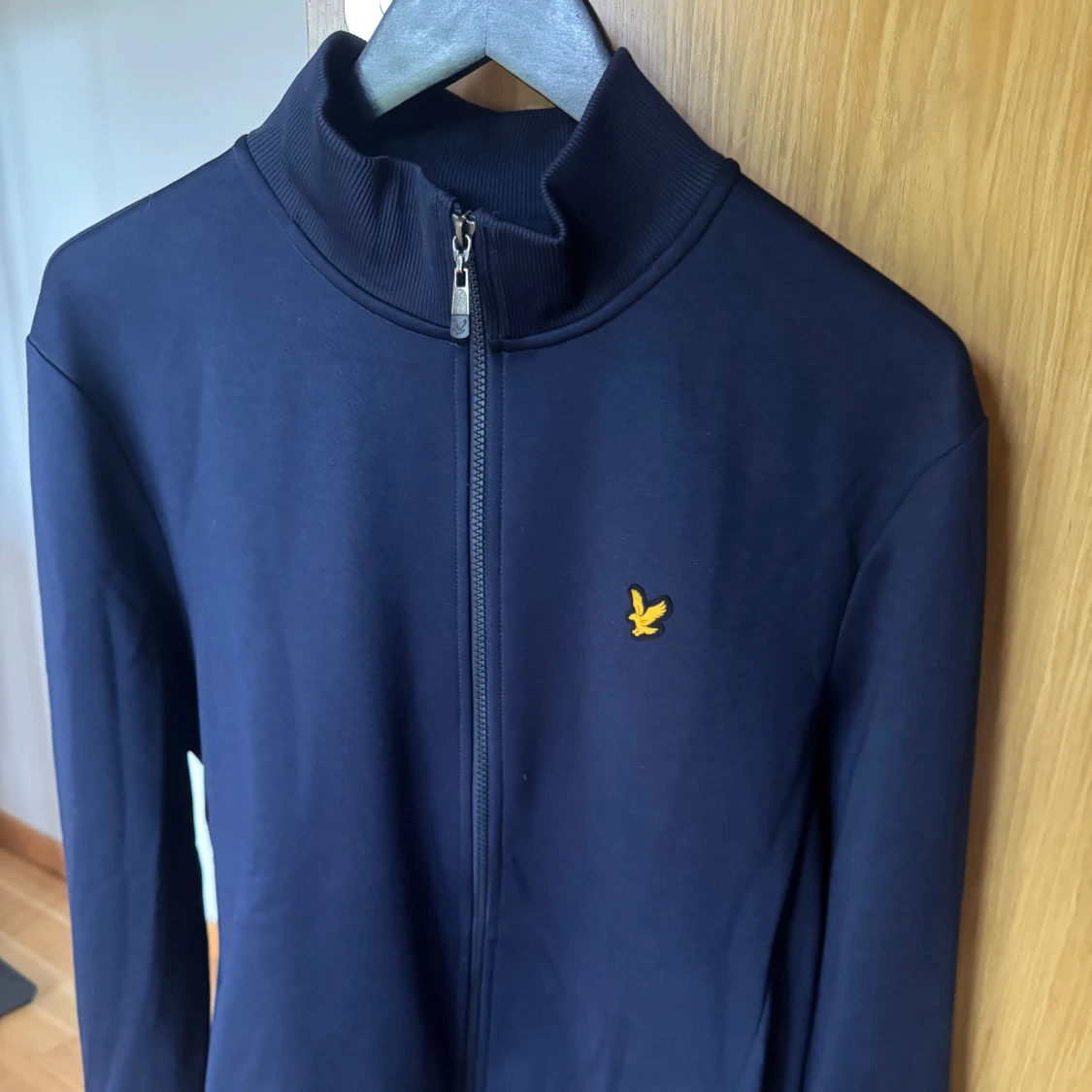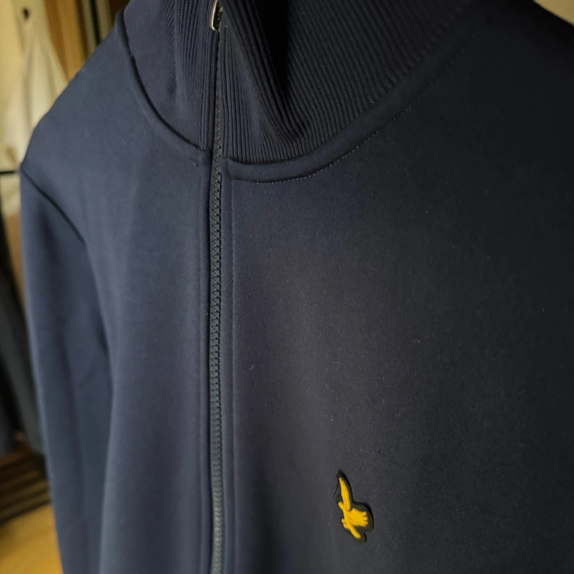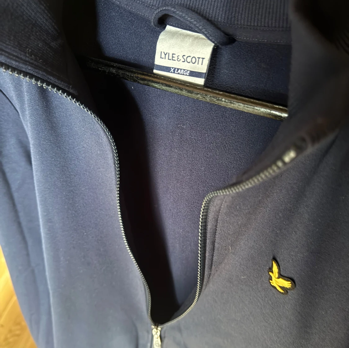 Riktigt stilren marinblå zip-tröja från Lyle & Scott. Tröjan är nästintill aldrig använd och är i mycket bra skick. Tröjan har hel dragkedja framtill, ribbad krage och är tillverkad i mjuk bomullsmix. Perfekt till lager-på-lager eller bara till casual tillfällen. Ordinarie pris 899kr.
