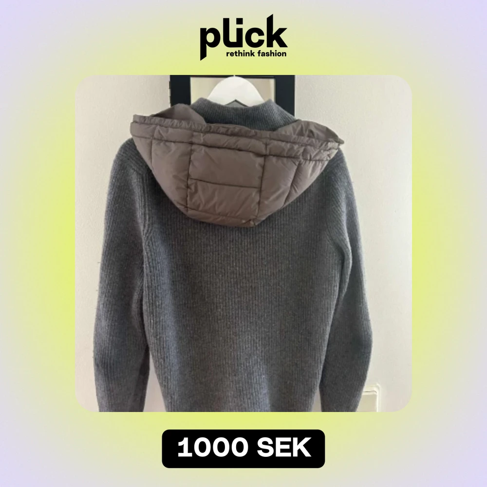 Snygg cardigan med avtagbar luva. Tyvärr har luvan släppt lite på höger sidan men går enkelt att sy fast och det är inget som stör eller märks.
