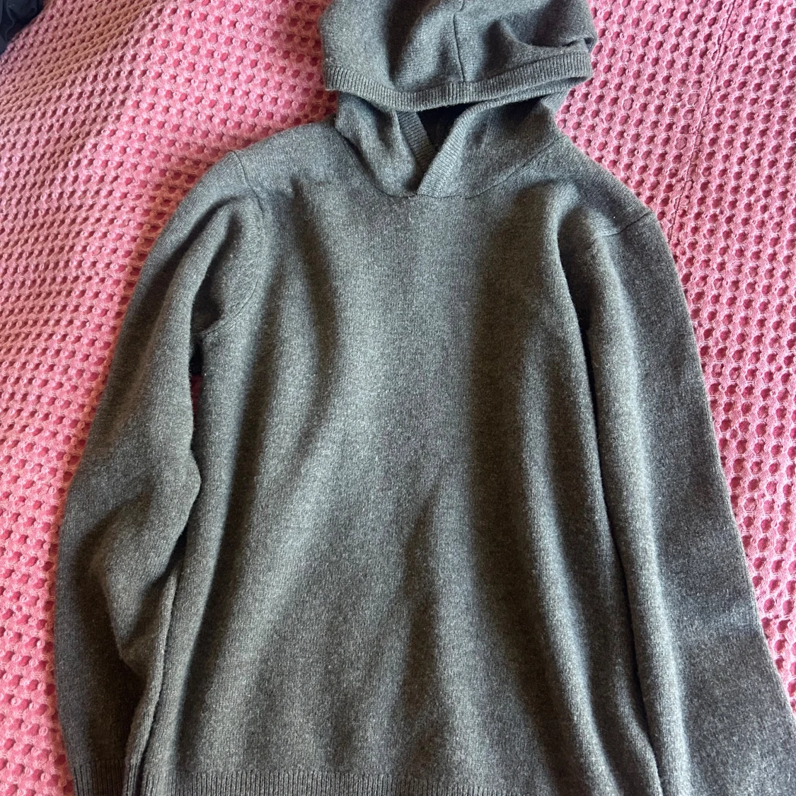 Stickad merino ull hoodie. Riktigt gosig och varm. Riktigt bra skick 10/10. Mörkgrå/brun färg