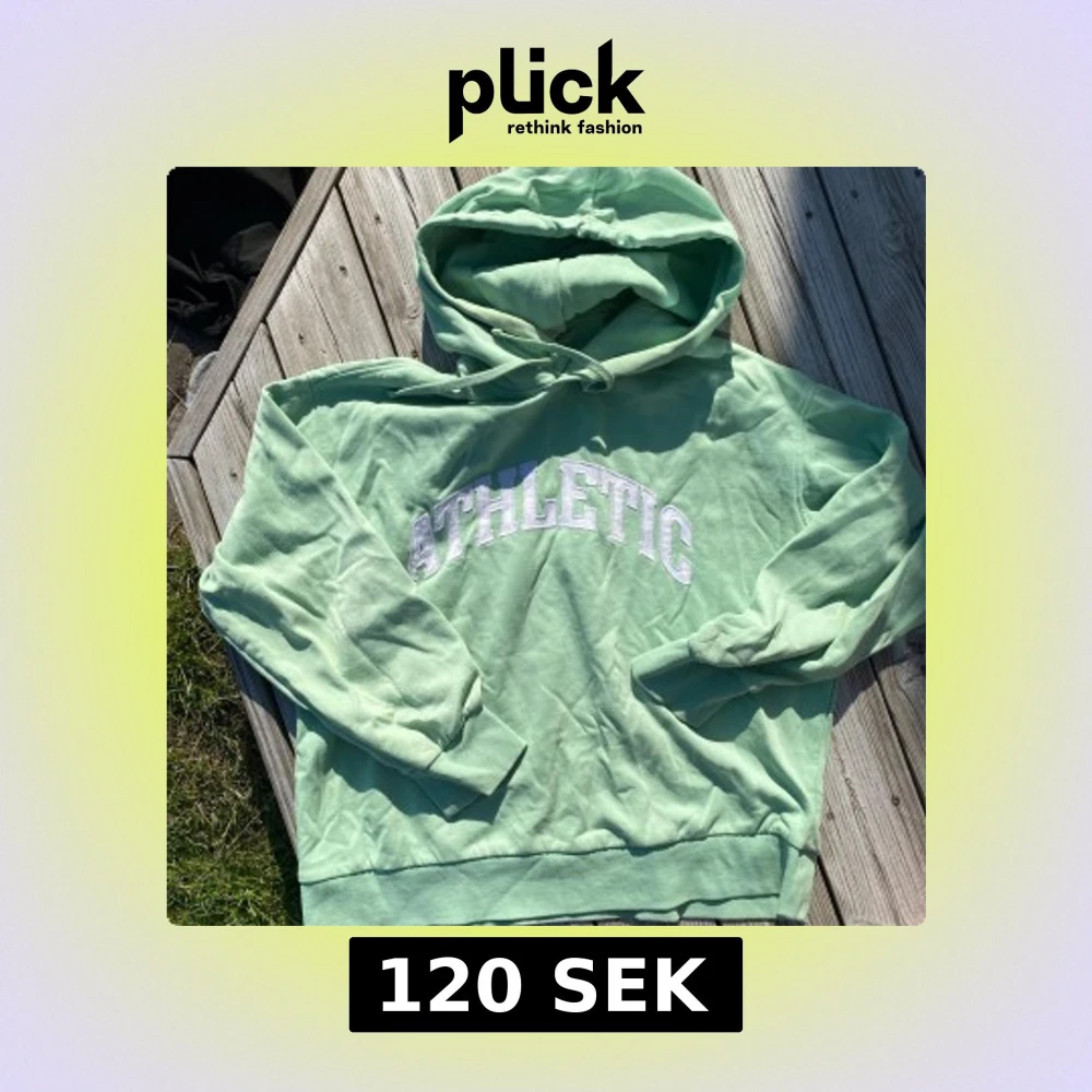 Säljer en mintgrön hoodie med vit ATHLETIC-text på bröstet. Tröjan har huva med dragsko och långa ärmar med muddar. Perfekt för en avslappnad stil och supermjuk insida.