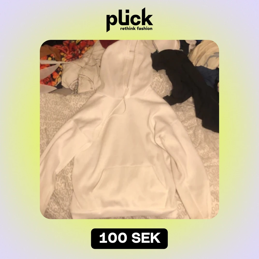 Ganska tunn mjuk vit hoodie med !!perfekt luva!! Använd några få gånger. Vet ej storlek men passar som typ M?