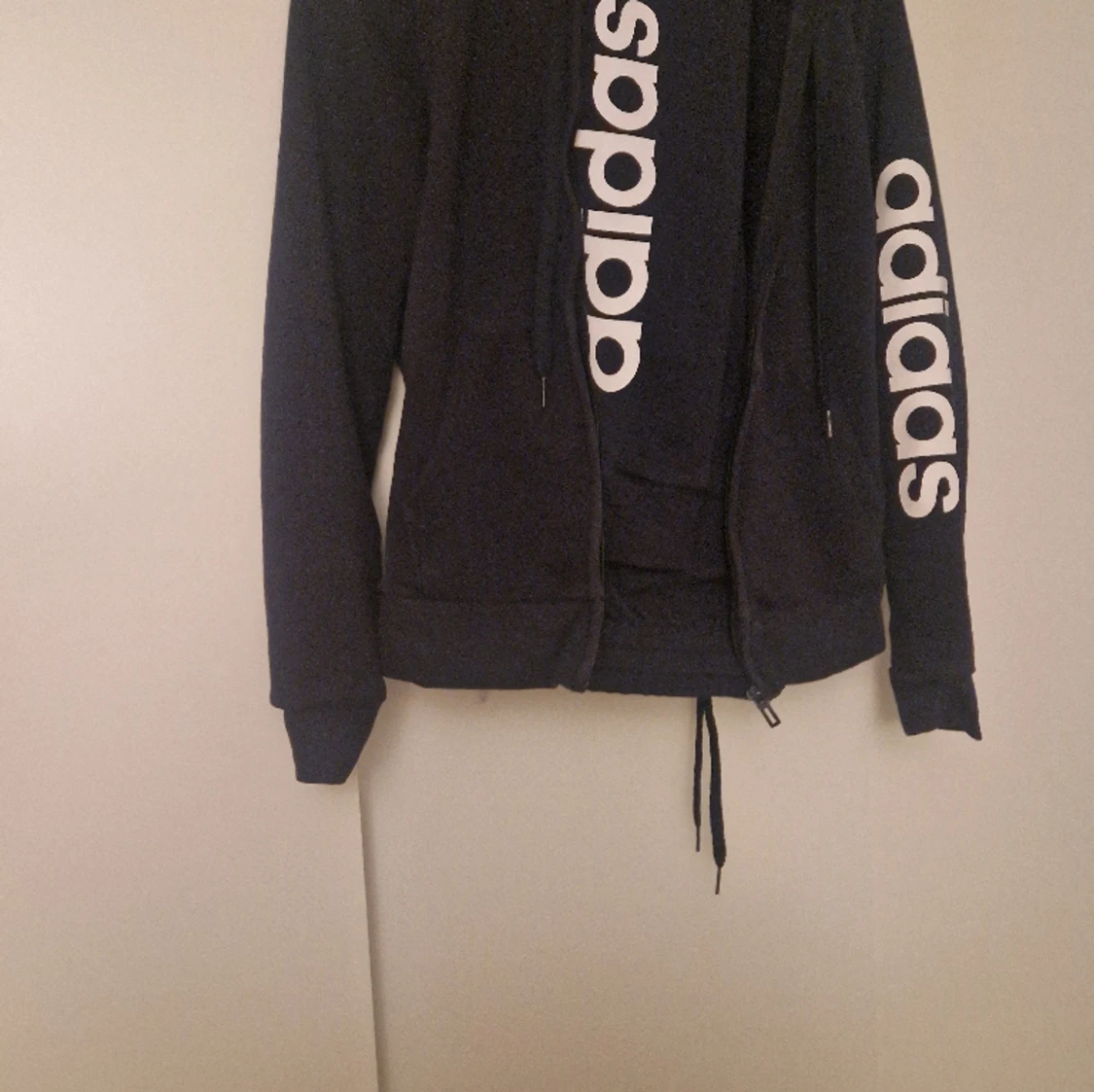 Ett adidas mjukisset som är i bra skick. Den har ett jättefin marinblå färg med en vit text.