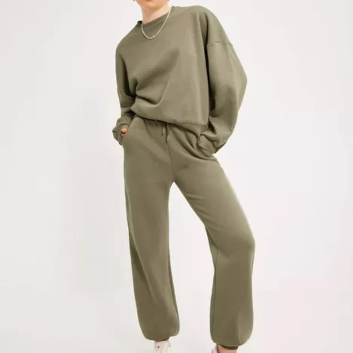 Grönt set från Nelly med sweatshirt och byxor. Storlek XS