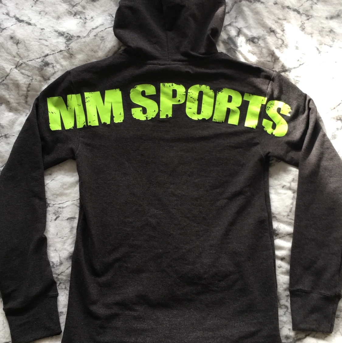 MM Sport luvtröja med tryck på baksidan, använd enstaka gång.
