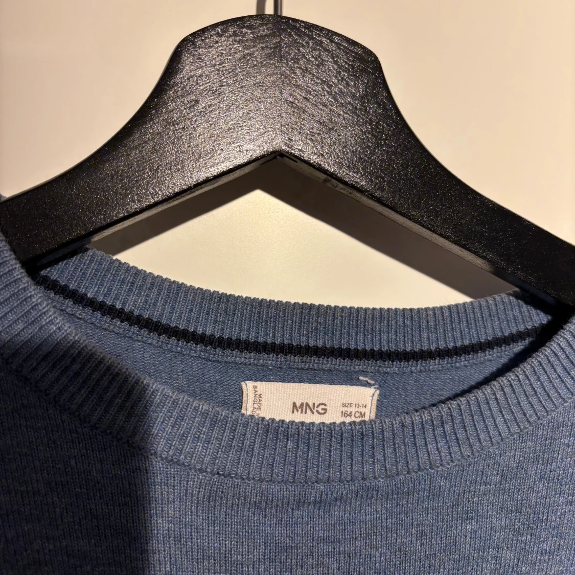 En finstikad ljusblå tröja från MNG. Jätte fint skick. Storlek 164 passar dig som är 160-167. Skriv om du vill ha fler bilder eller någon fråga.