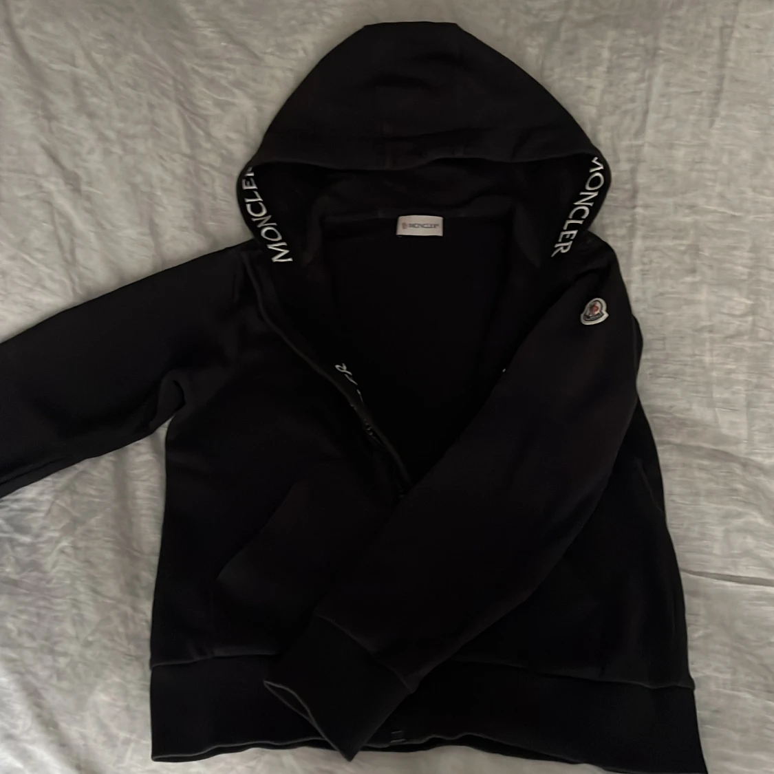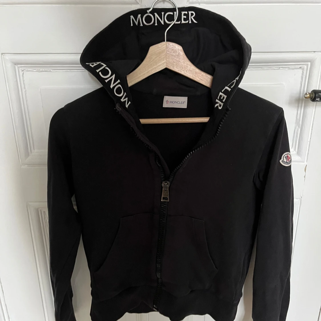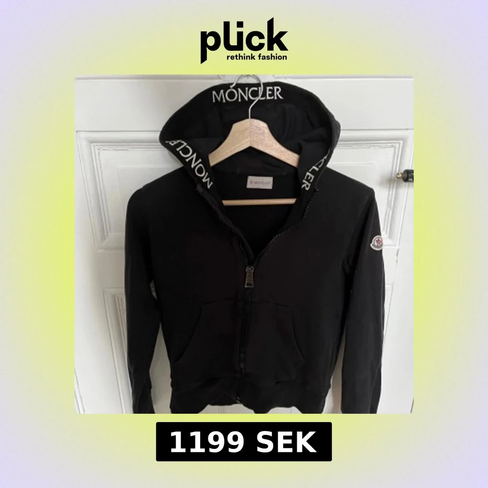 Hej! Jag säljer denna sjukt snygga och stilrena svarta hoodien från Moncler!😁 Den har en logga på vänstra ärmen och ”Moncler” text på kanten på insidan längs dragkedjan och luvan. Såklart äkta! Hör av dig om frågor!😁🤩