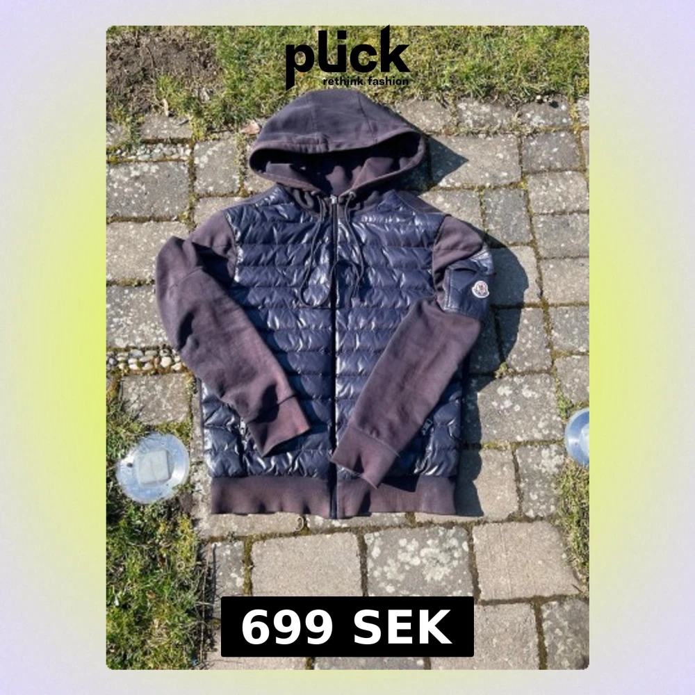 Snygg hoodie från Moncler i mörkblått med quiltad, glansig front och mjuka ärmar. Huva med dragsko och dragkedja framtill. Moncler-logga på ärmen och praktisk ficka med knapp. Perfekt för en trendig streetstyle-look.