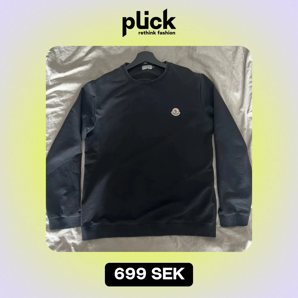 Svart långärmad tröja med moncler loggan på bröstet! Väldigt stilren i skick 7/10. Inte tts. Hör av dig vid mer frågor🤩