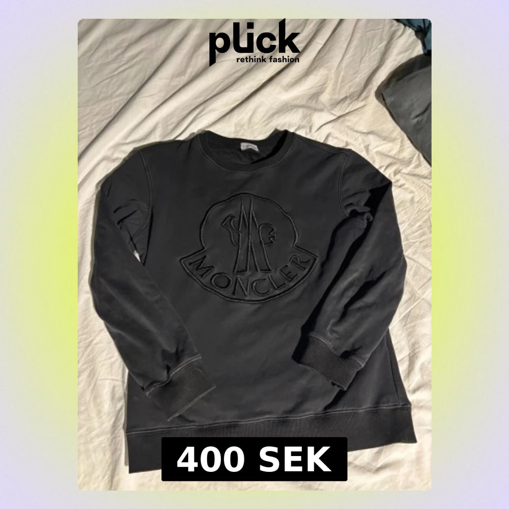 Svart sweatshirt från Moncler med stort, broderat logotypmärke på bröstet. Tröjan har rund hals, ribbade muddar vid ärmslut och nederkant samt långärmad passform. Perfekt för dig som gillar stilrena och exklusiva plagg.