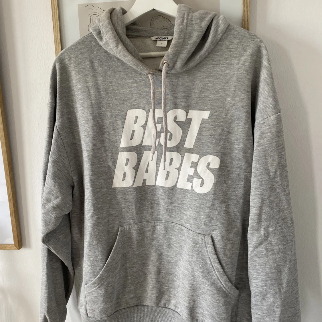 Best Babes - hoodie från Monki. Passar en XS - L beroende på hur du vill att den ska sitta. Använd men forfarande fint skick för att va en grå hoodie.