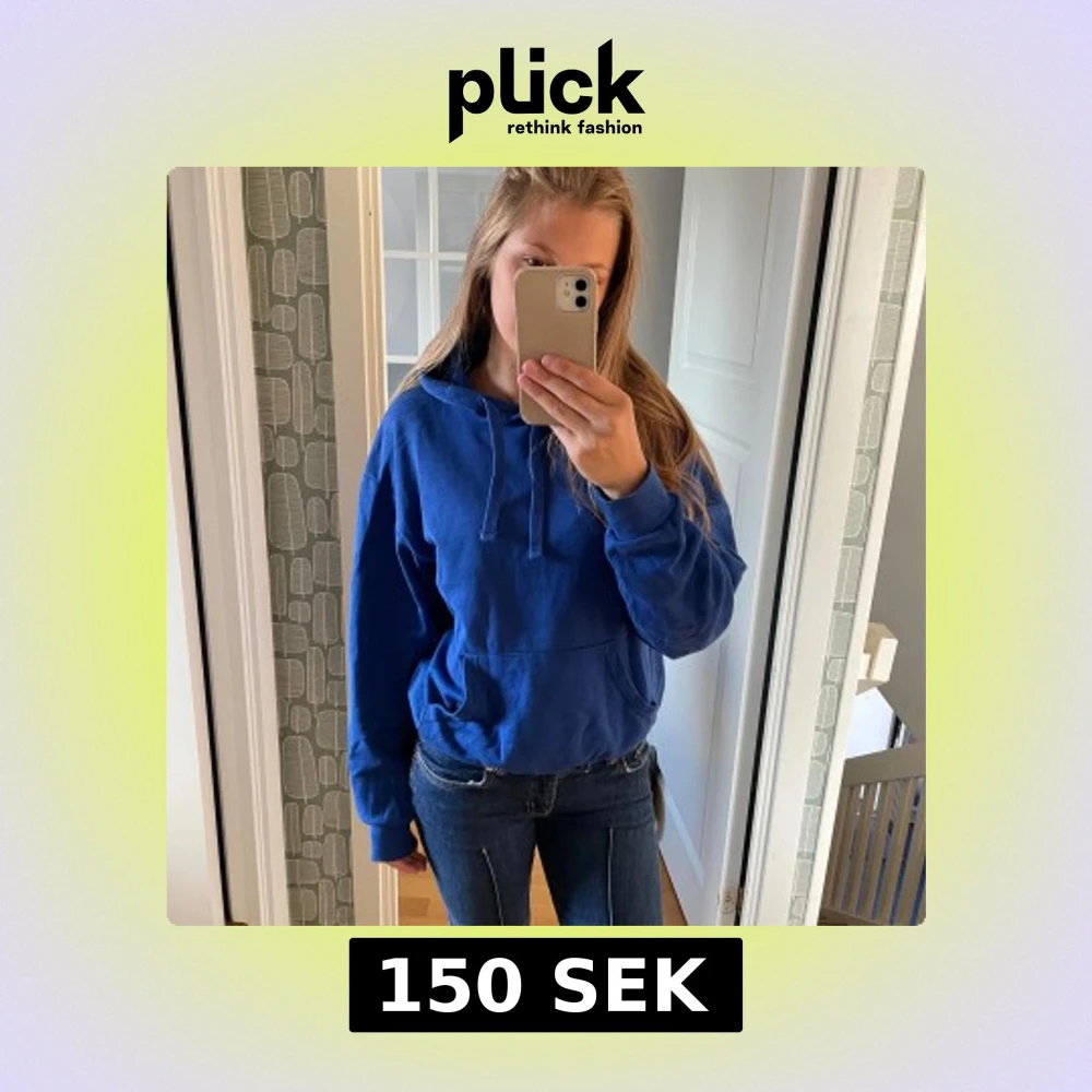 Blå hoodie från Monki i storlek XS. Tröjan har justerbara snören och en ficka framtill. Mjuk insida med muddar på ärmarna.💙