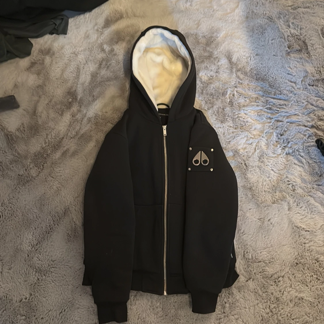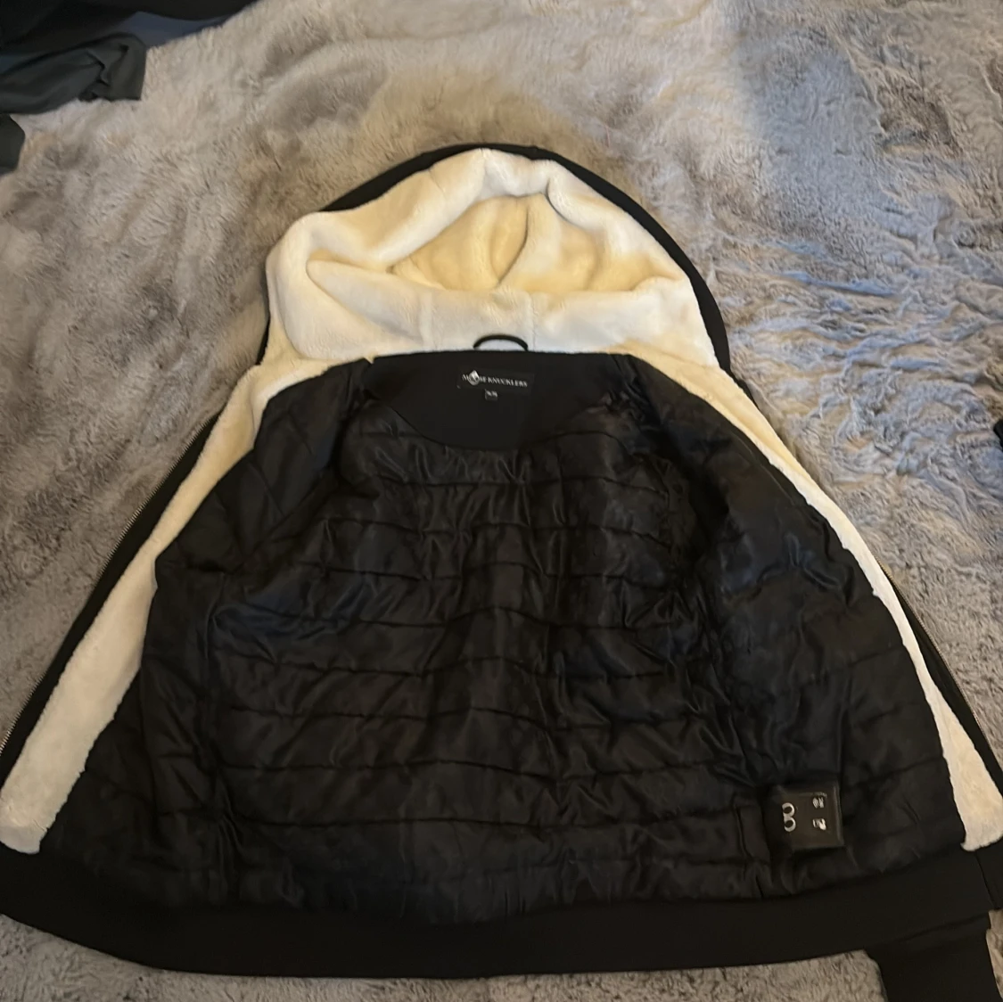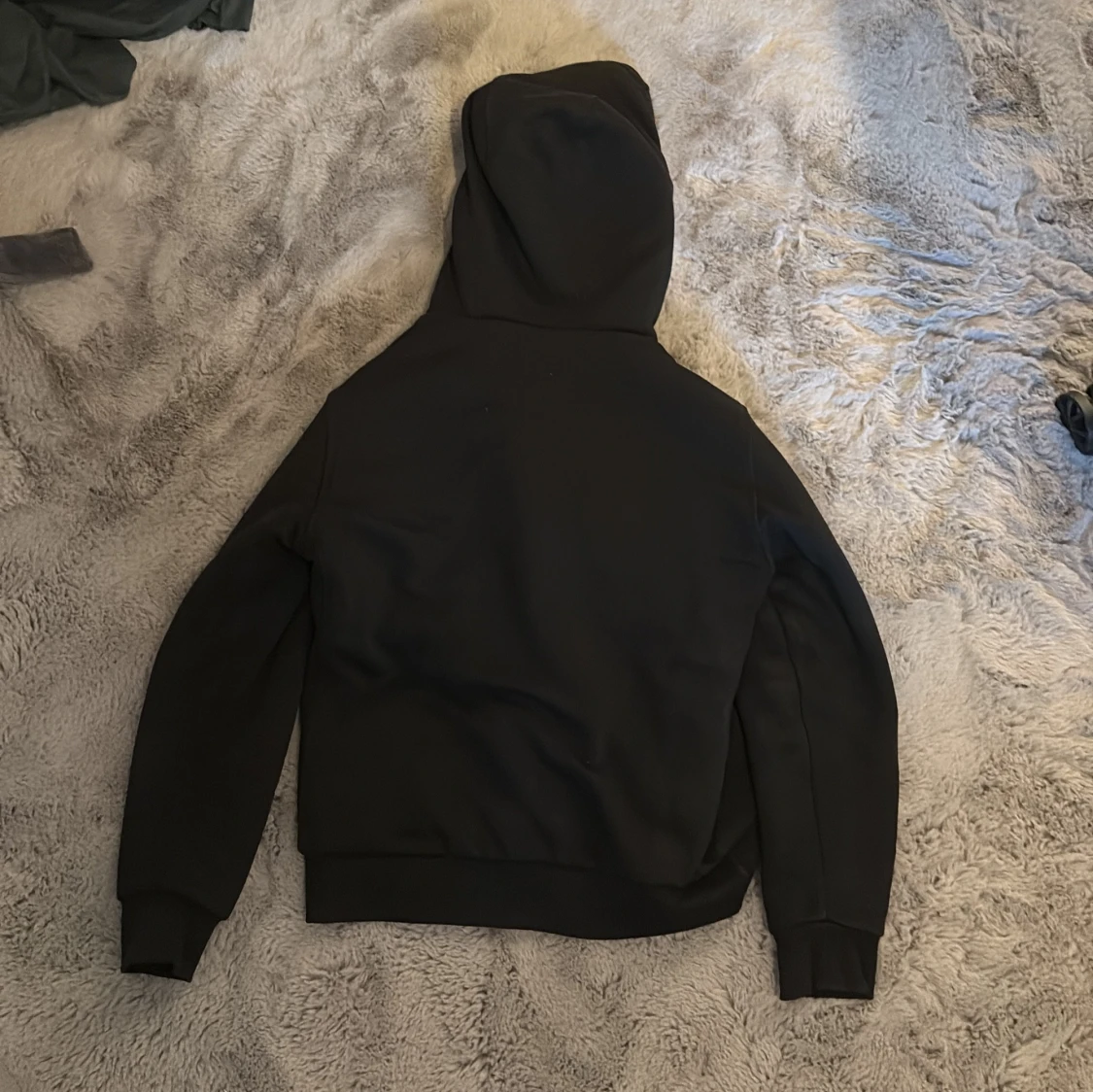 Väldigt stilren och skön hoddie nu till hösten. Jag använde den även som jacka och det funkade perfekt. Väldigt skön äkta päls inuti jackan. Väldigt snygg och bra skick. Storlek XL i barnstorlekar skulle säga att den passar om du är från 150-173, passar också om du skulle ha storlek Xs.