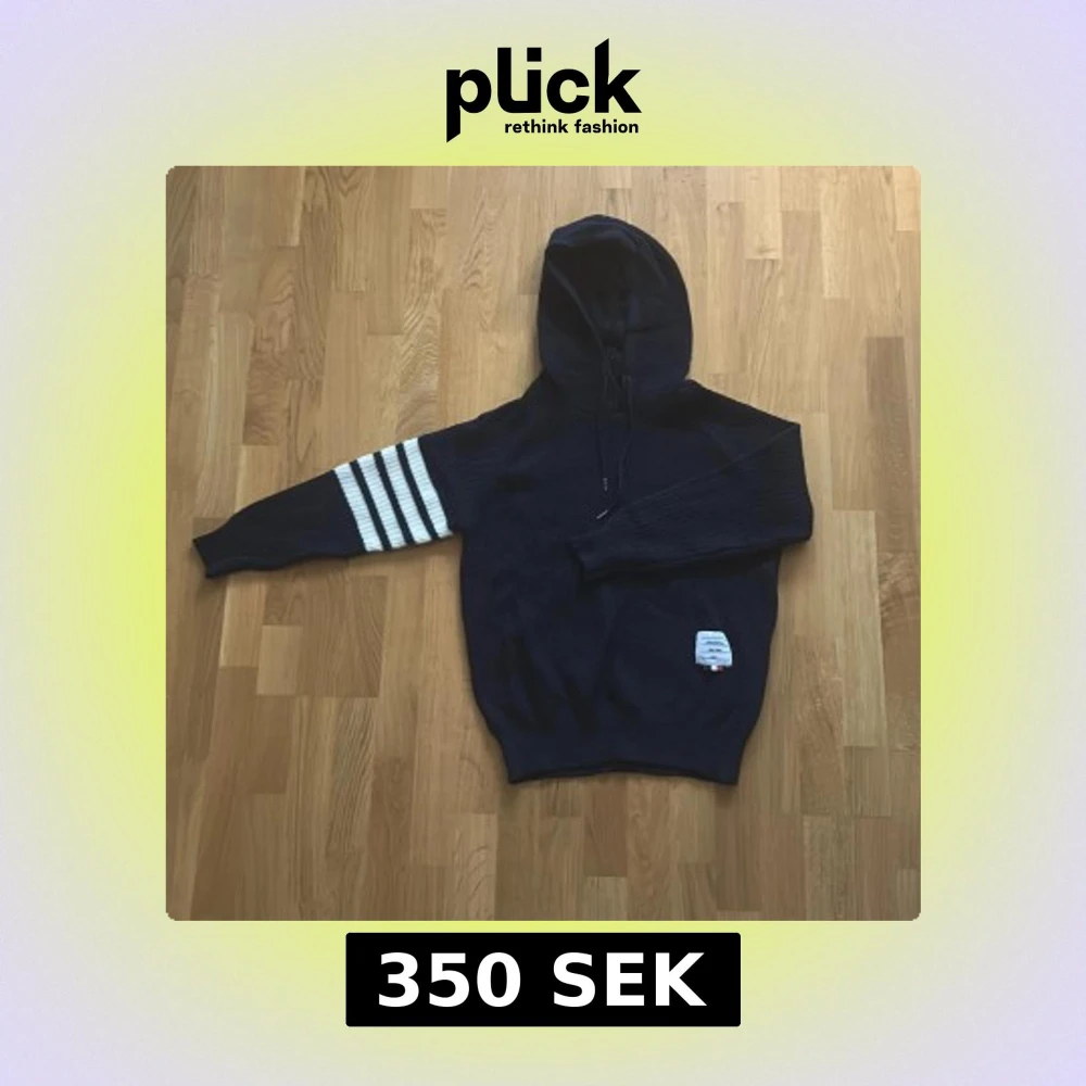 Navy blå hoodie med vita sträck på ärmen. As snygg nu till hösten/vintern!