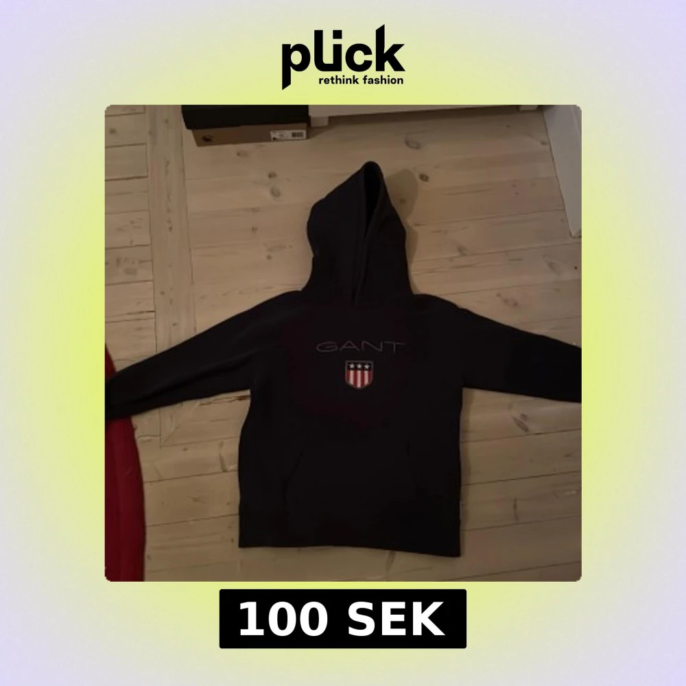 Säljer en mörkblå hoodie från GANT med klassisk logga och sköld på bröstet. Tröjan har huva och magficka, samt ribbade muddar vid ärmslut och nederkant. Perfekt för en avslappnad stil. En liten defekt på armbågen men inget som syns igenom tröjan och den är lite urtvättad.