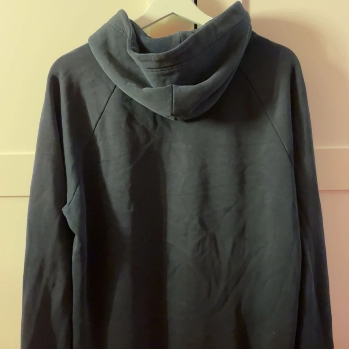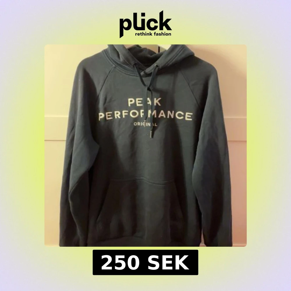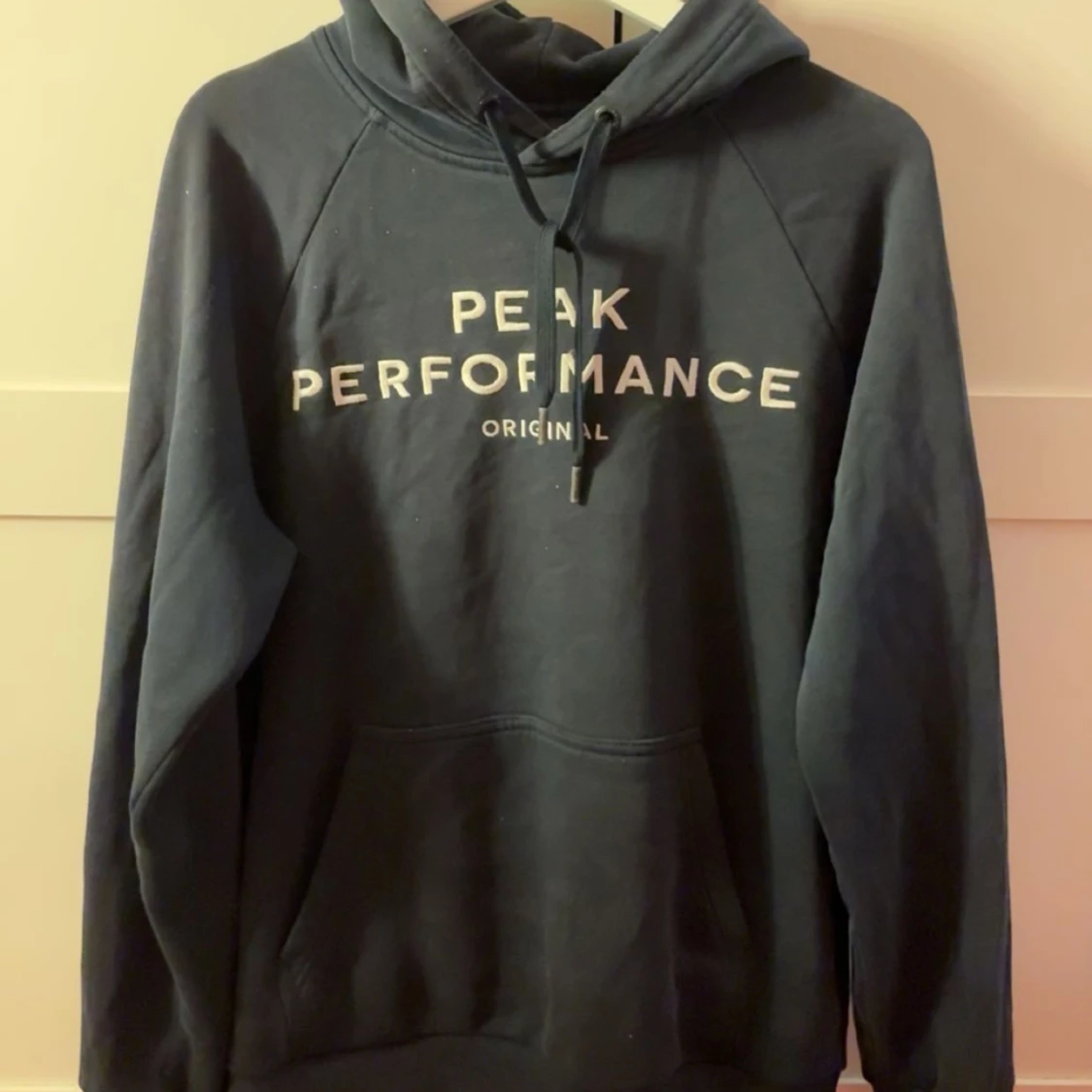Snygg mörkblå hoodie från Peak Performance med vit logga på bröstet. Tröjan har huva med snörning och en stor magficka framtill. Perfekt för chill dagar och har en klassisk, loose passform. Materialet är mjuk bomull och polyester.