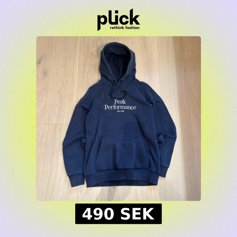 En stilren mörkblå hoodie av Peak Performance . Den har en justerbar huva med snören. Perfekt för en avslappnad stil.