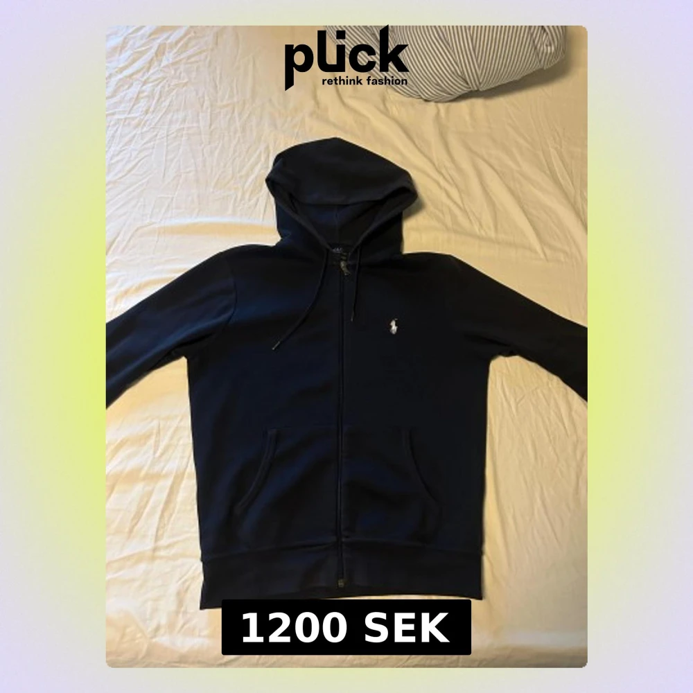 Snygg mörkblå hoodie från Polo Ralph Lauren med klassisk logga broderad på bröstet. Tröjan har huva med snörning, dragkedja framtill och två fickor. Tillverkad i mjuk bomull, perfekt för chill dagar. Passformen är normal och ärmarna är långa. Kvitto från NK finns med köp, bara att skriva om du har några frågor