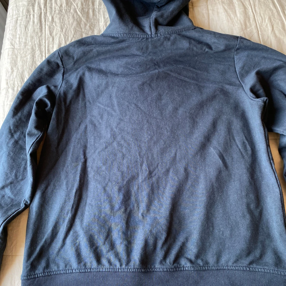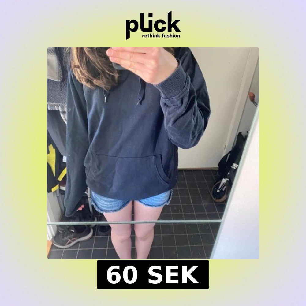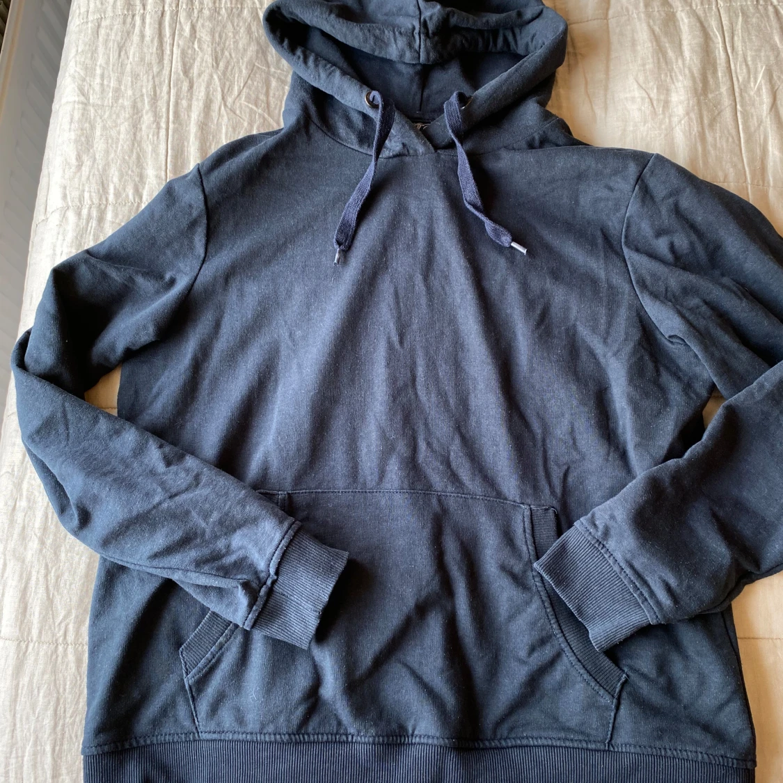 Säljer en enkel och stilren mörkblå hoodie från Ullared. Tröjan har huva med dragsko, magficka och långa ärmar med ribbade muddar. I bra skick.
