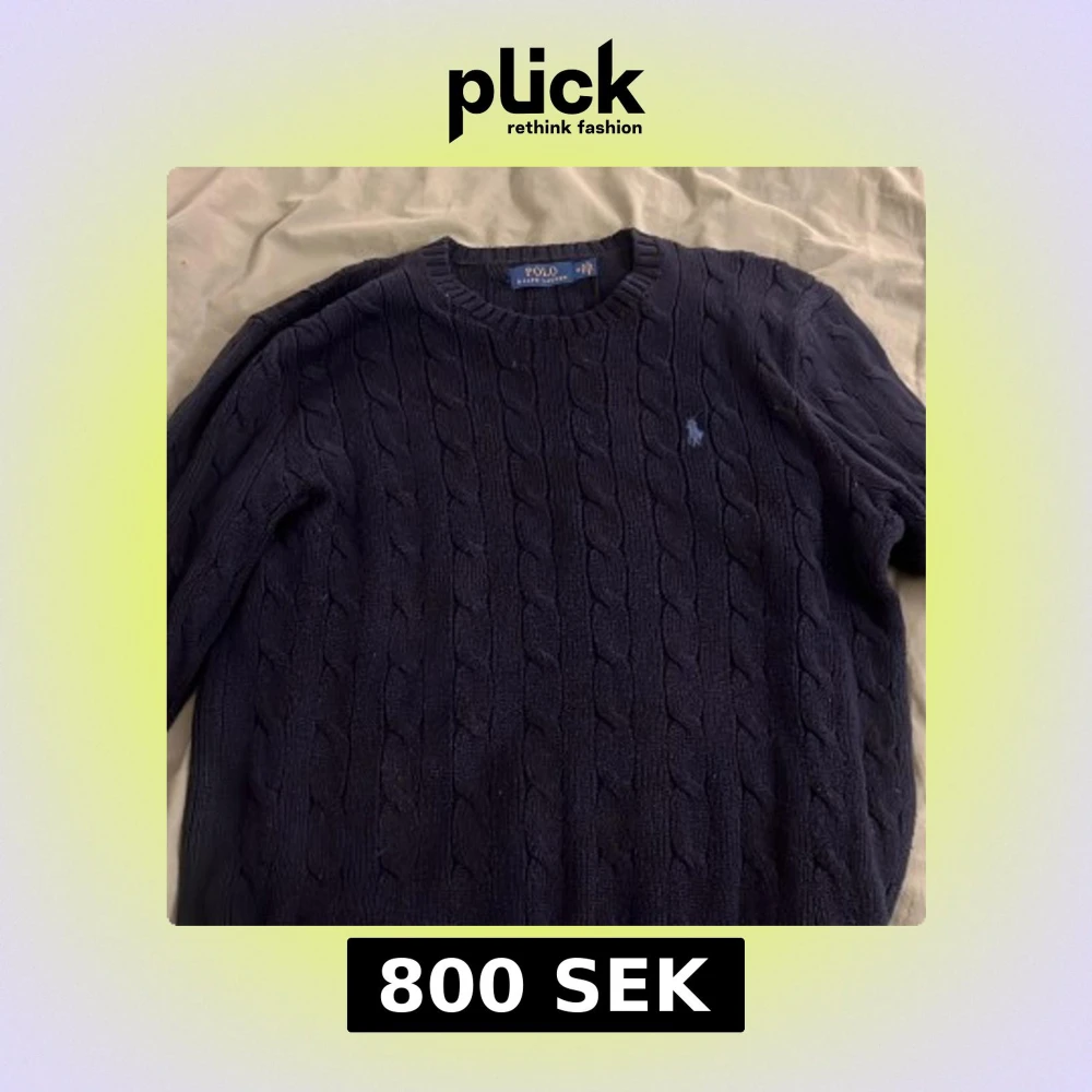 Kabelstickad mörkblå tröja från Polo Ralph Lauren med rund halsringning och broderad logga på bröstet. Klassisk och stilren modell i mjukt stickat material, perfekt för lager-på-lager under kyliga dagar.