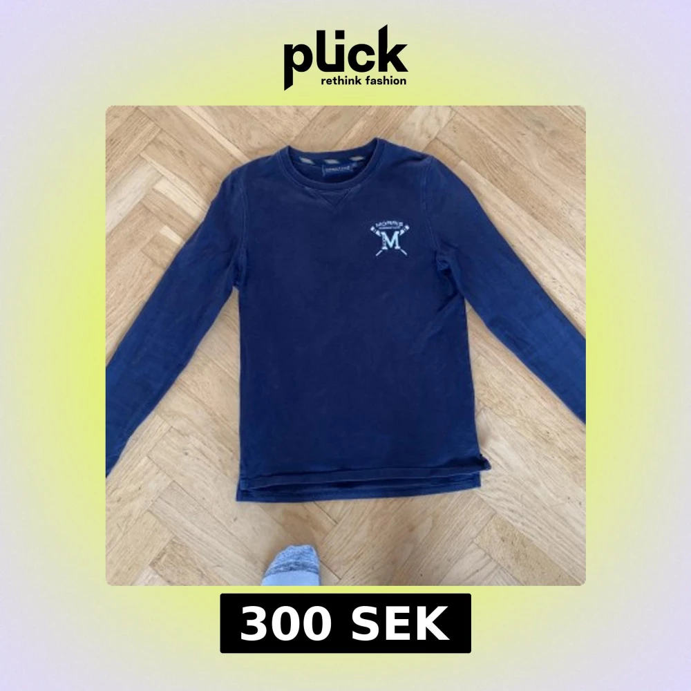 Säljer en mörkblå långärmad tröja från Morris R. Club med broderad logga på bröstet. Tröjan har rund halsringning och klassisk passform. Perfekt för en stilren och avslappnad look. Och det går att diskutera pris