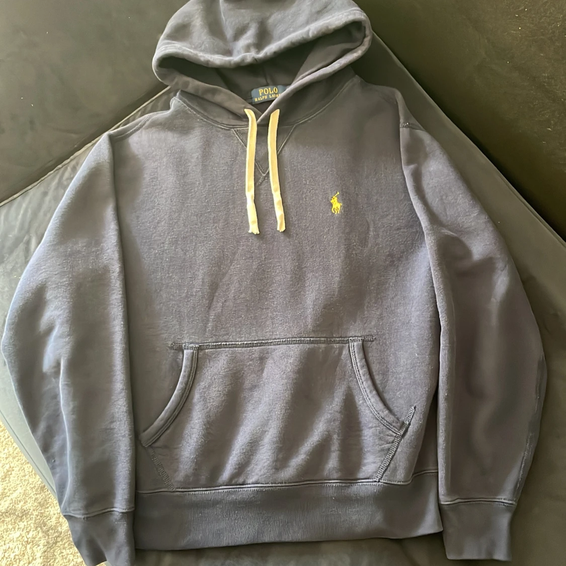 Säljer en mörkblå hoodie från Polo Ralph Lauren med klassisk gul broderad logga på bröstet. Hoodien är i storlek S men kan passa XS. Perfekt för dig som gillar en clean och stilren look. Om du har något på hjärtat är de bara att fråga. Kan även ta emot byten🤗💯