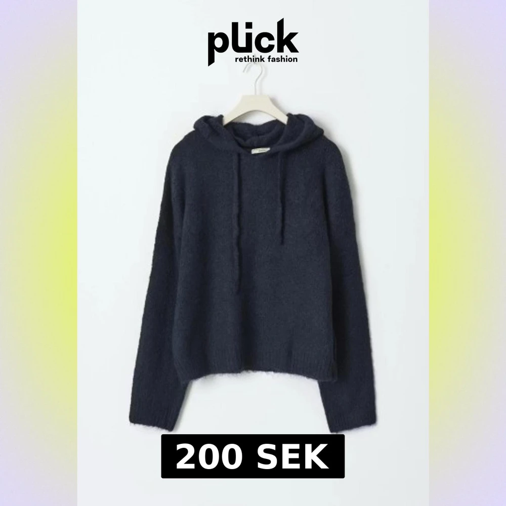 Mysig mörkblå stickad hoodie från Gina Tricot med luva och dragsnören.