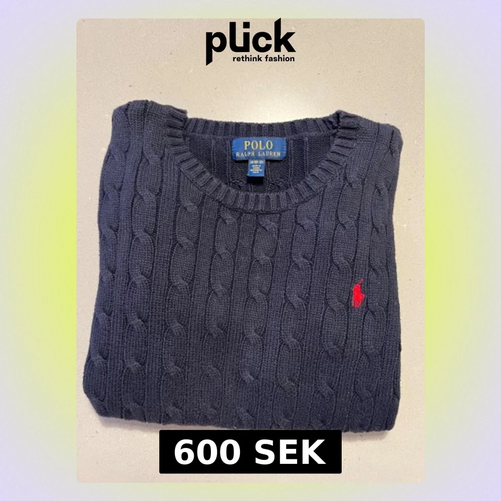 Snygg mörkblå stickad tröja från Polo Ralph Lauren med klassiskt kabelstickat mönster och röd broderad logga på bröstet. Rund halsringning och långa ärmar med ribbade muddar. Perfekt för dig som gillar stilrena och tidlösa plagg.