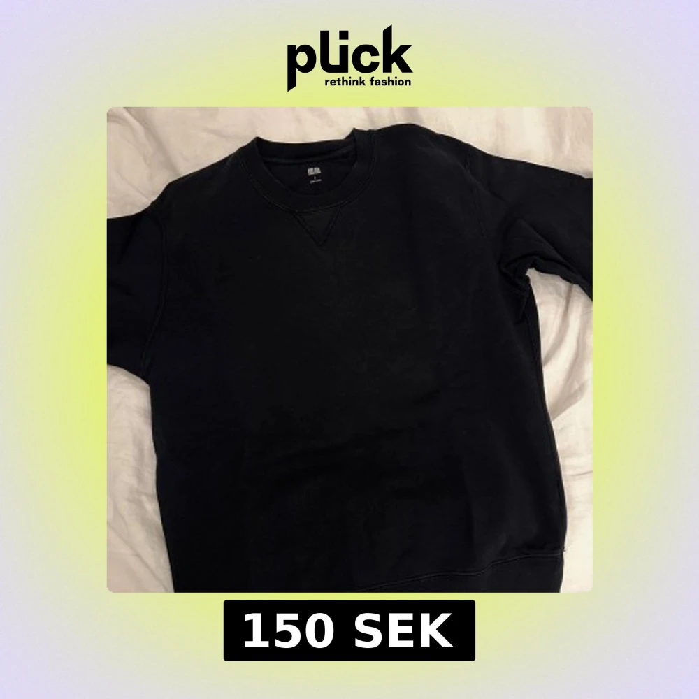 En klassisk mörkblå sweatshirt från Uniqlo i storlek S. Tröjan har rund halsringning, ribbade muddar och är tillverkad i mjuk bomull. Perfekt basic att ha i garderoben och funkar året runt.