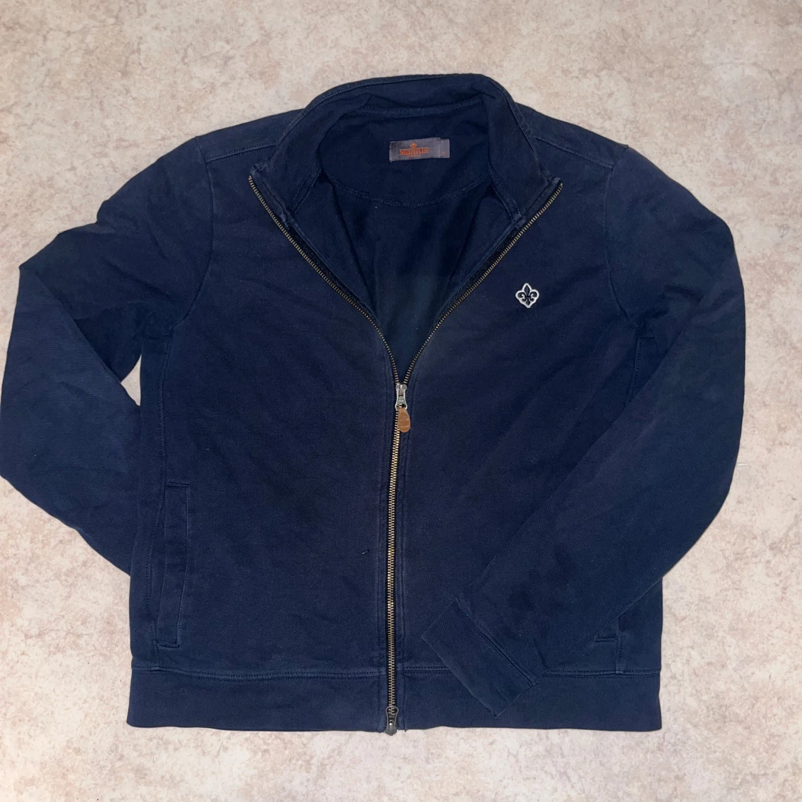 Snygg mörkblå tjocktröja från Morris med dragkedja framtill och diskret logga på bröstet. Tjocktröjan har en klassisk krage och raka ärmar Enkel och stilren design som funkar till det mesta.