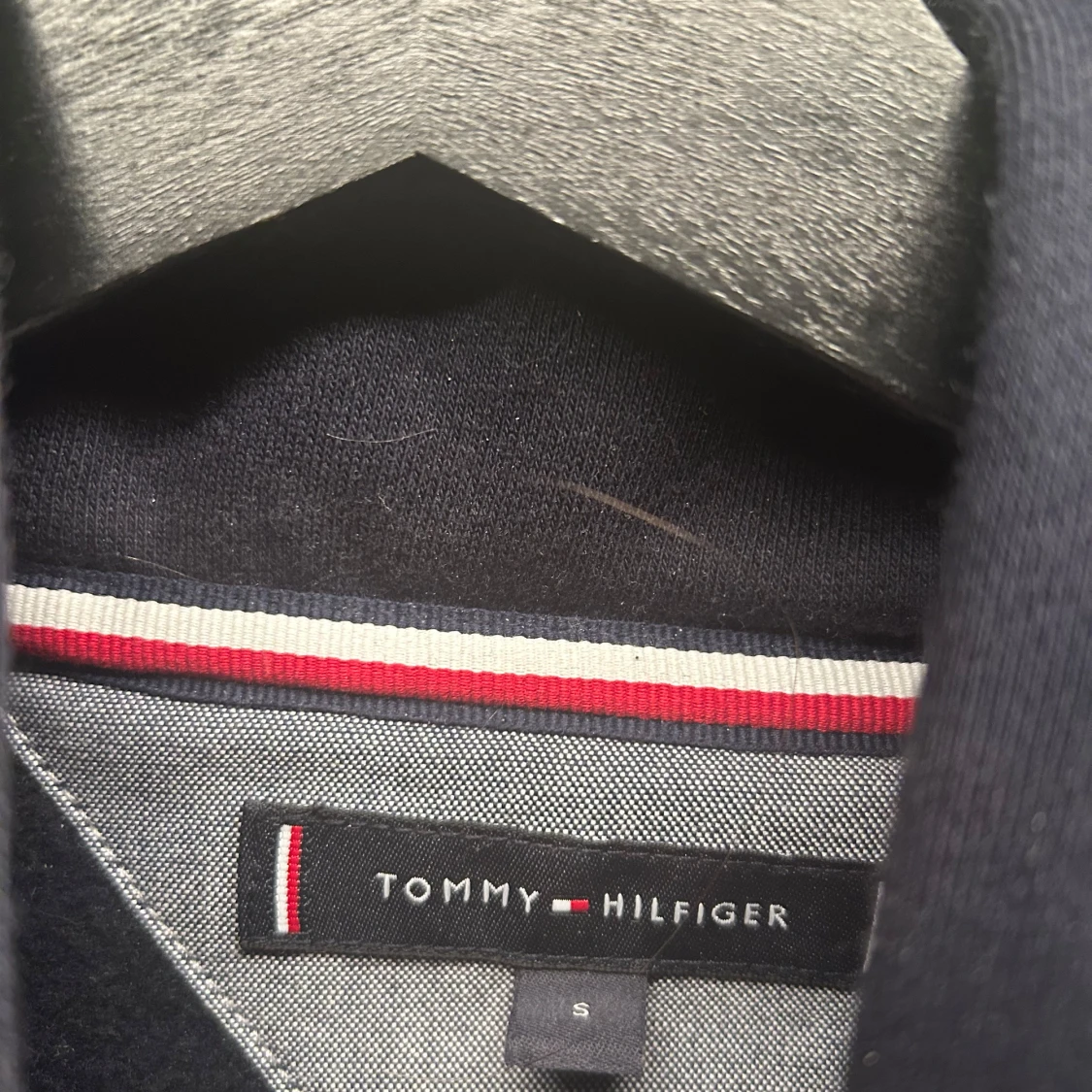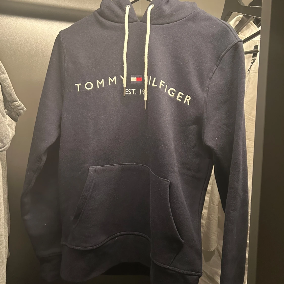 Tja! Säljer en snygg mörkblå hoodie från Tommy Hilfiger i ett väldigt bra skick då den aldrig är använd. Med vit logga på bröstet och känguruficka. Hör av dig vid funderingar!