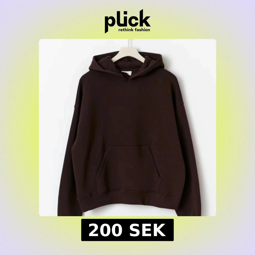 Säljer en stilren mörkbrun hoodie med huva och stor magficka. Tröjan har en avslappnad passform och långa ärmar, perfekt för att chilla eller dra på sig till skolan. Enkel design utan tryck eller mönster.