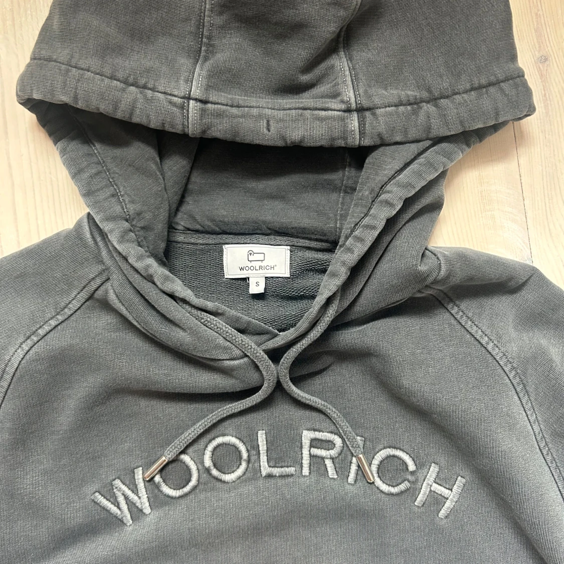 En fet och ovanlig mörkgrå hoodie från Woolrich med en skön tvätt som gör att den ser vintage ut. . Hör av er om ni har några frågor🙌